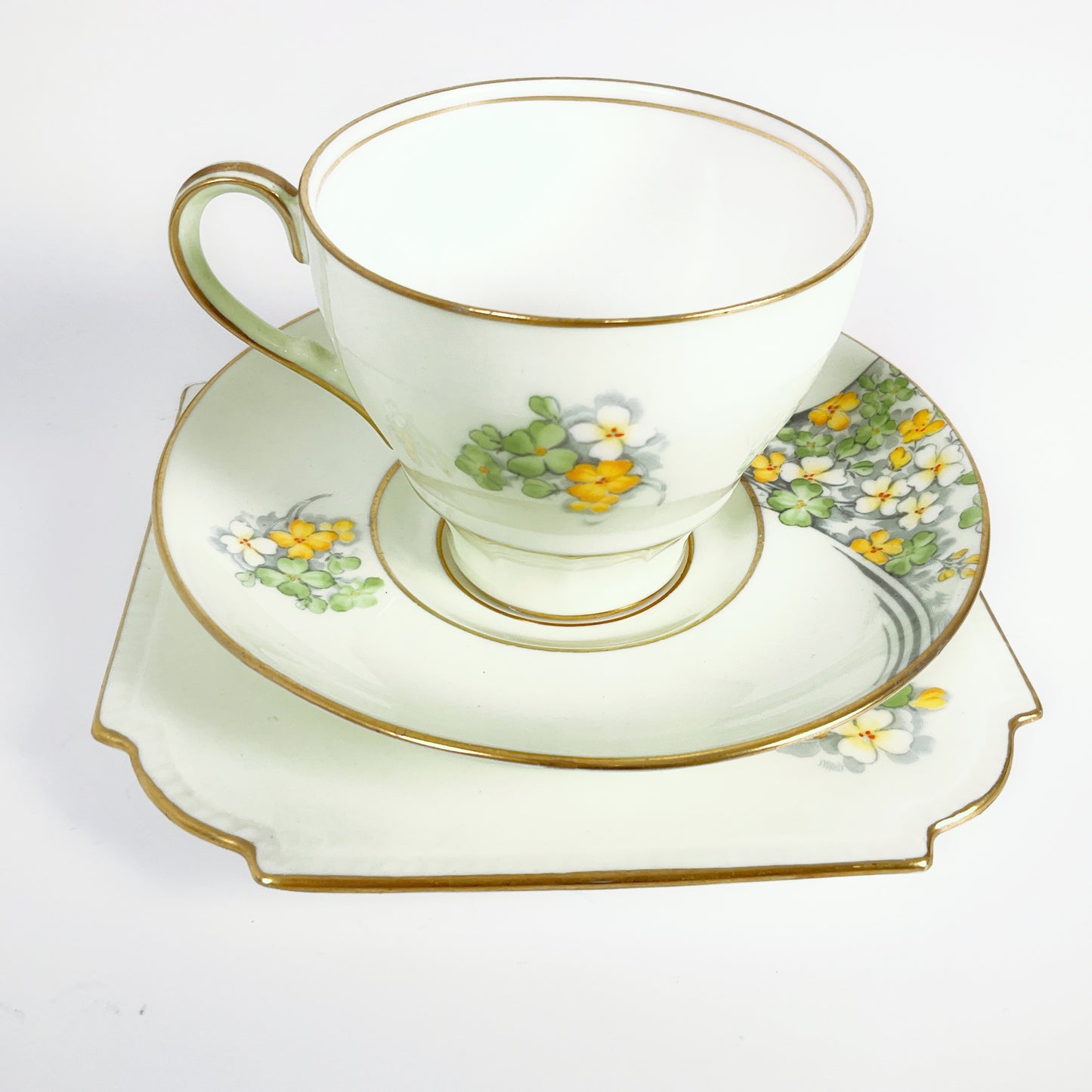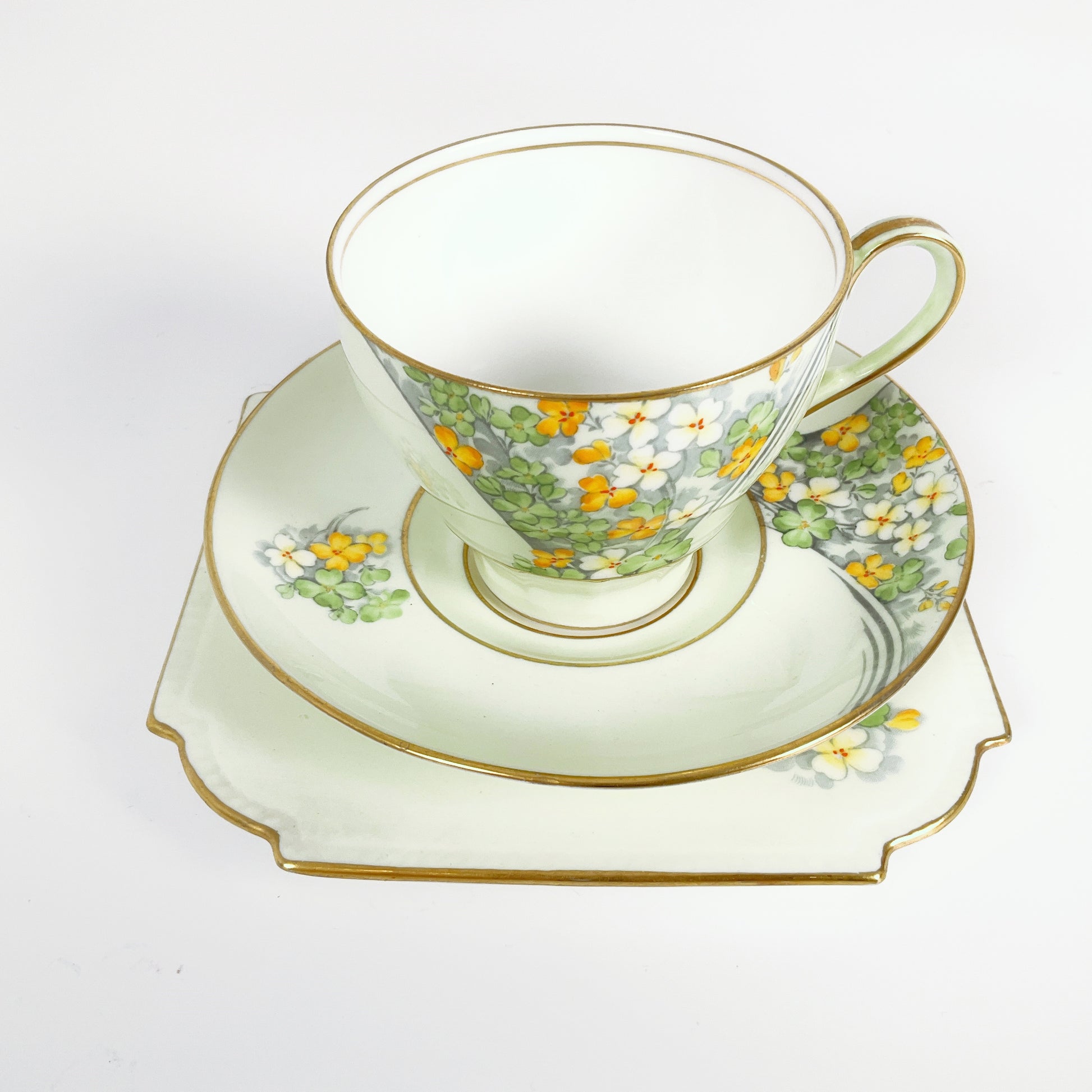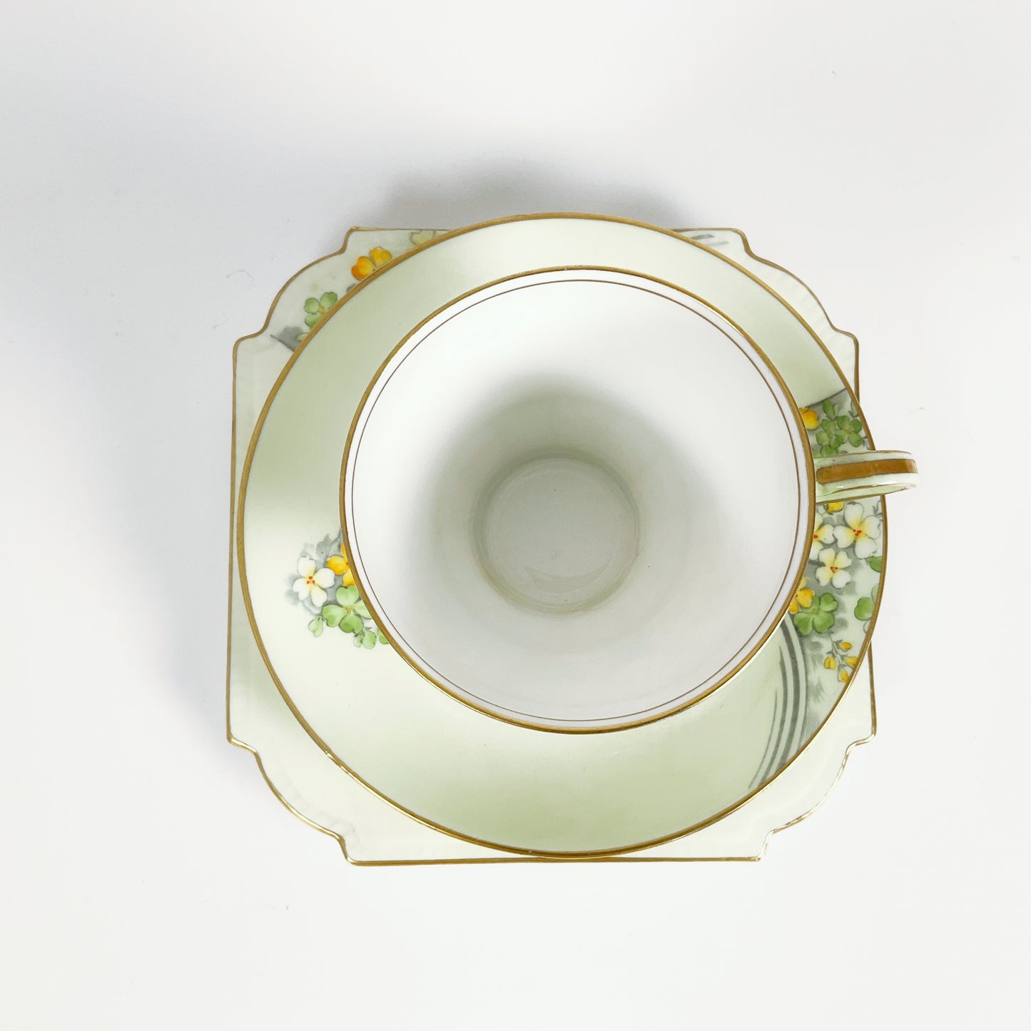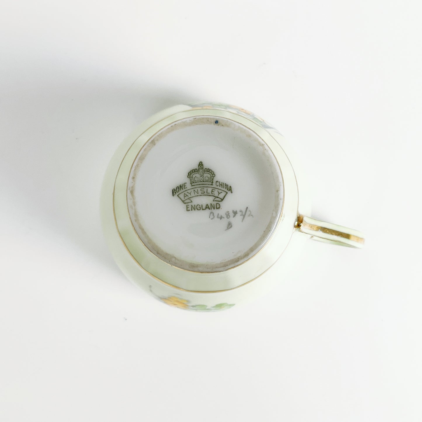 Aynsley - Bone China Cup and Saucer Green Floral Trio Set