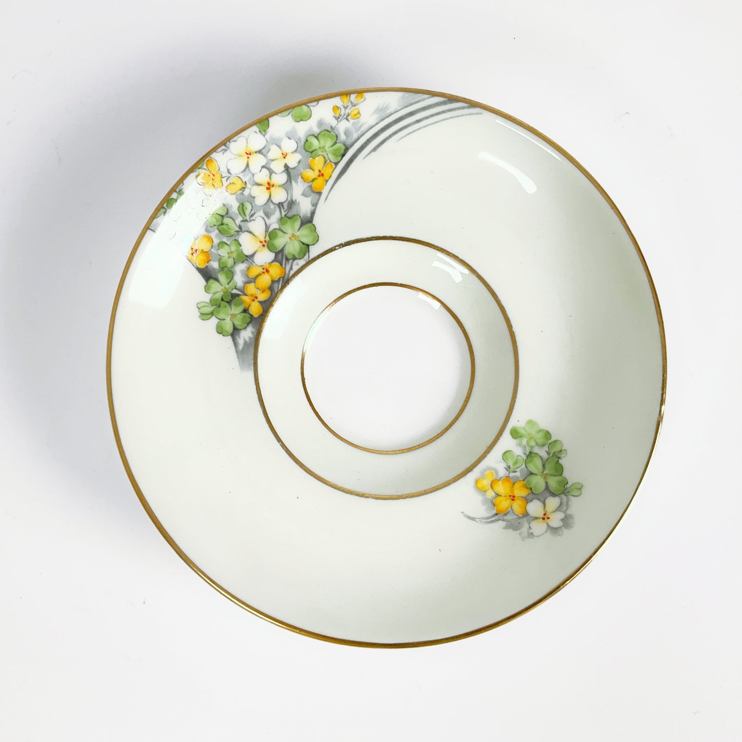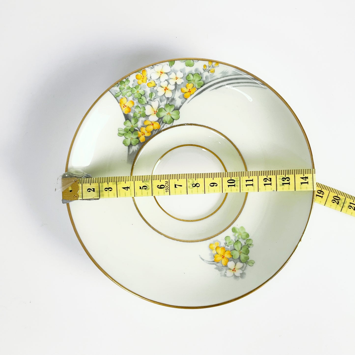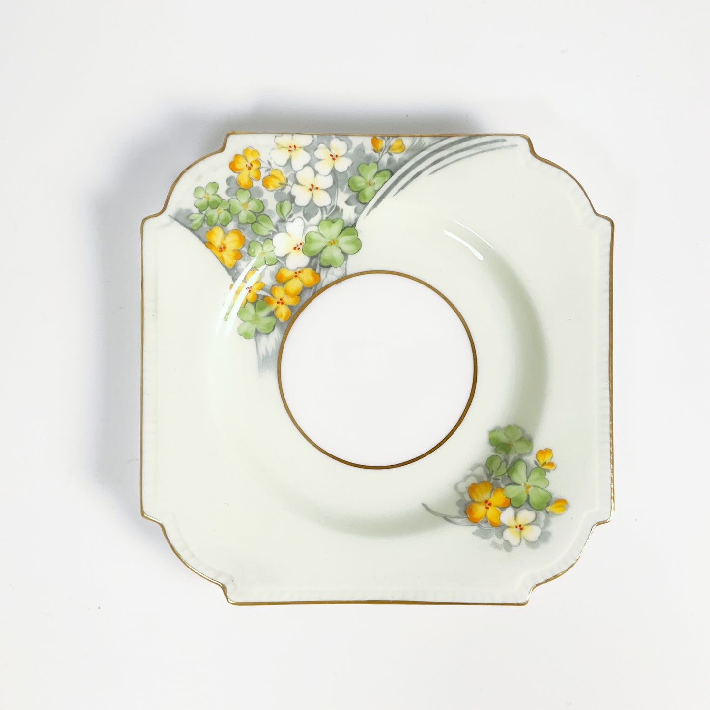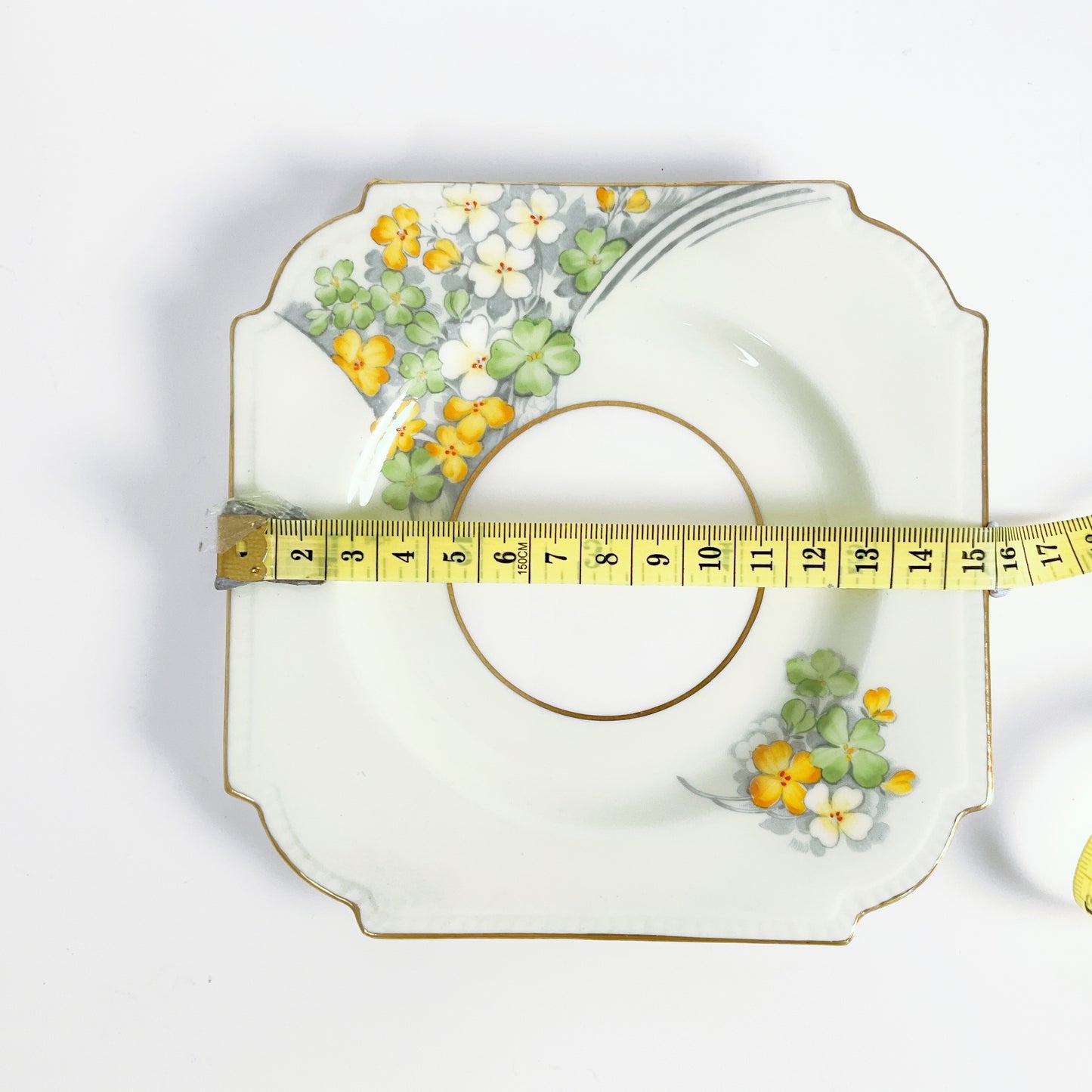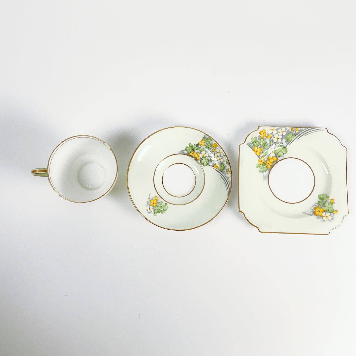 Aynsley - Bone China Cup and Saucer Green Floral Trio Set