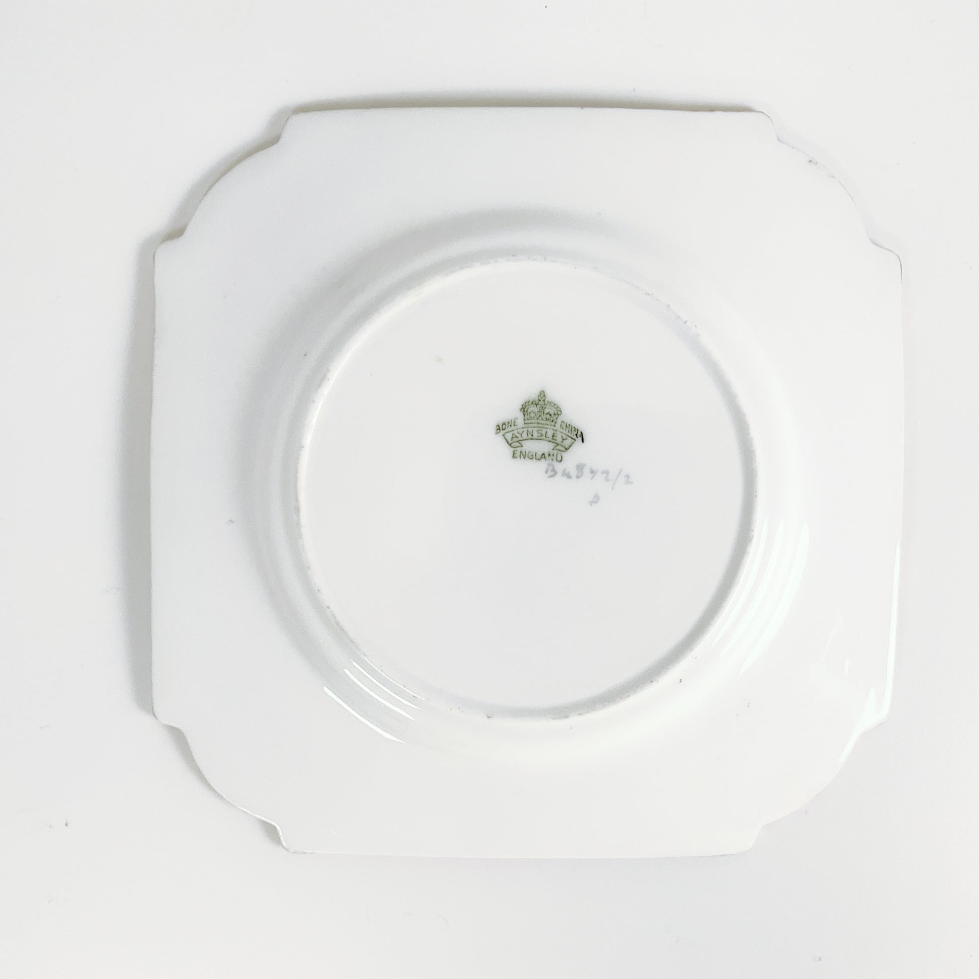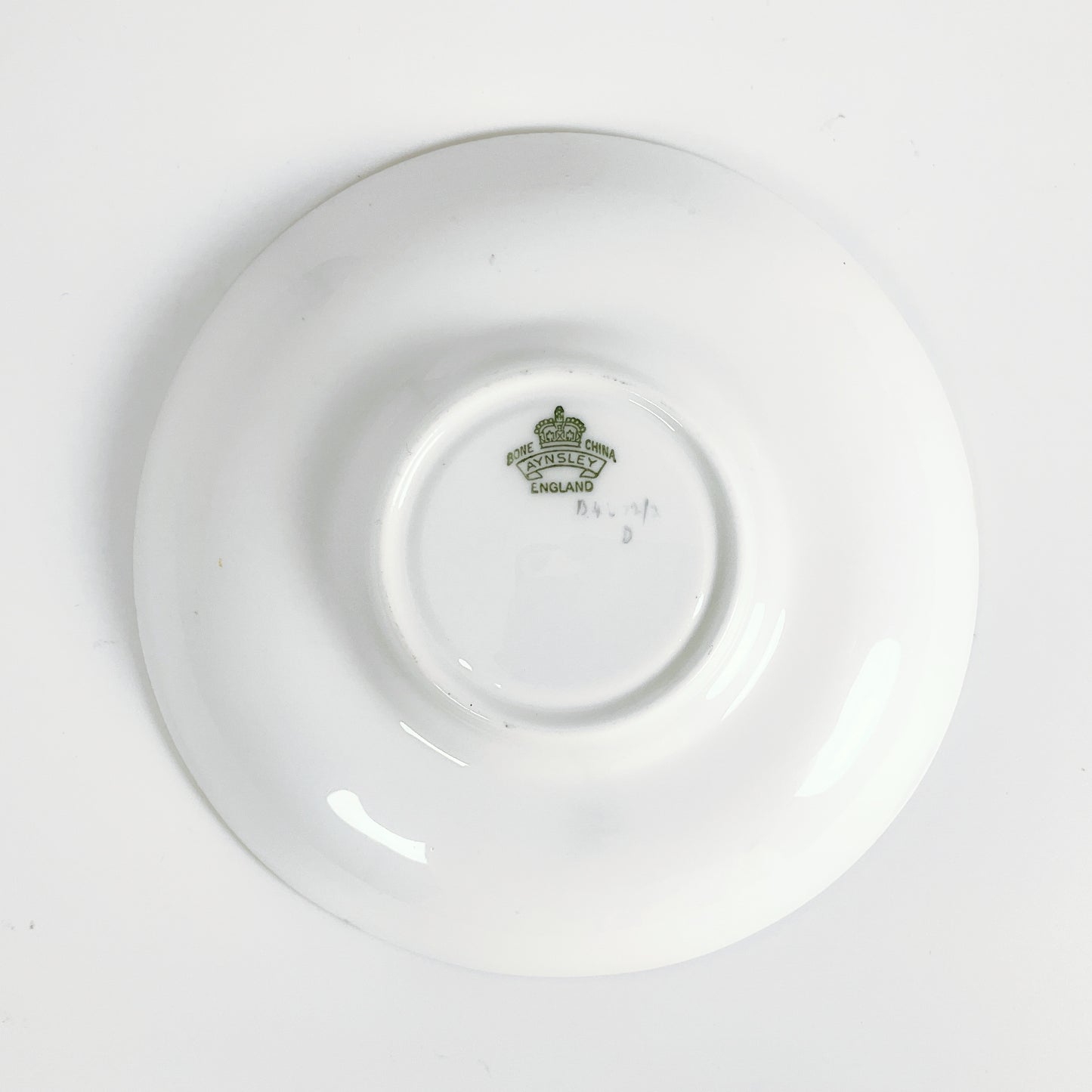 This elegant vintage set from Aynsley includes one cup and two saucers, each crafted from fine bone china. The underside of each piece is marked with "AYNSLEY, BONE CHINA, ENGLAND," attesting to its authenticity and English craftsmanship.