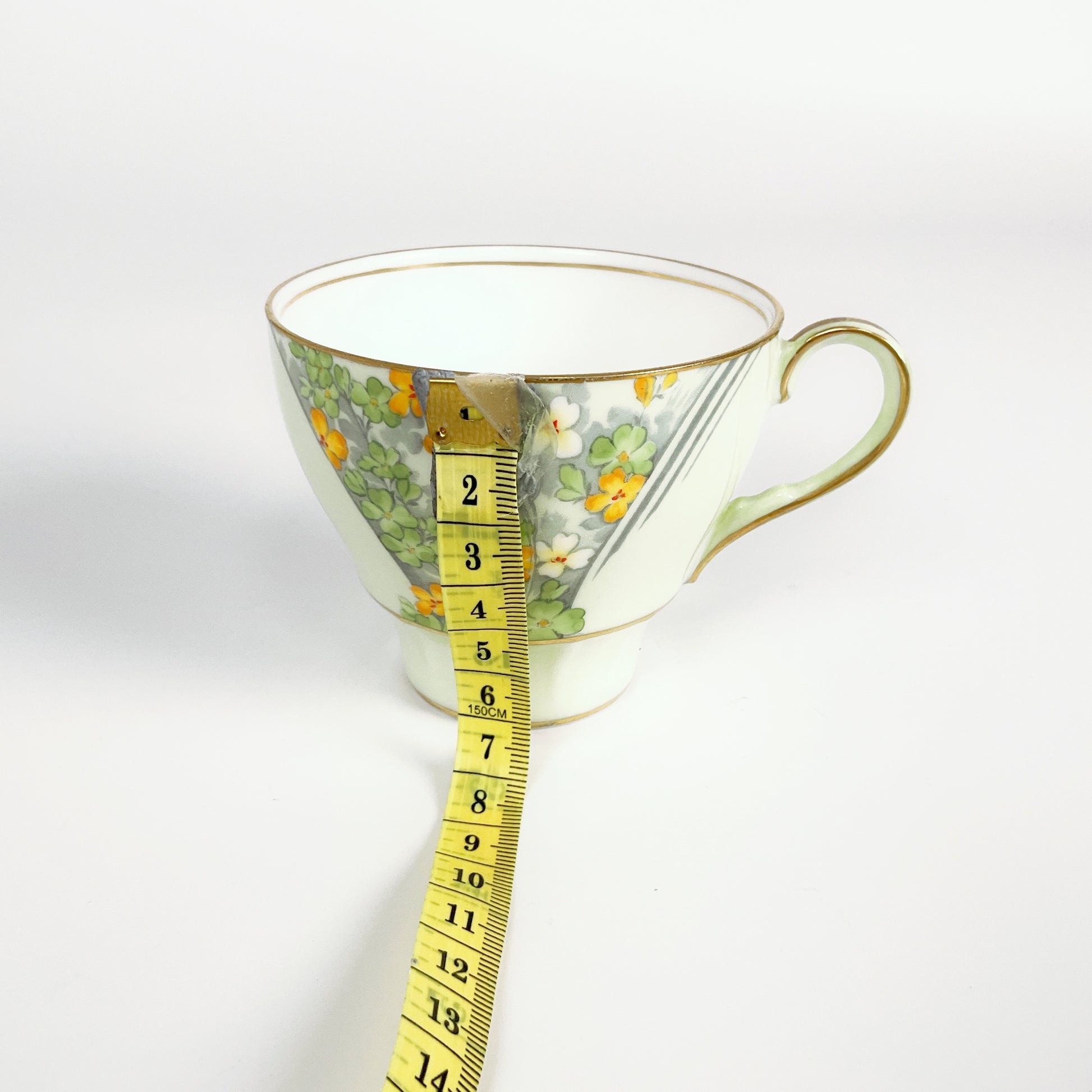 Aynsley - Bone China Cup and Saucer Green Floral Trio SetΒ