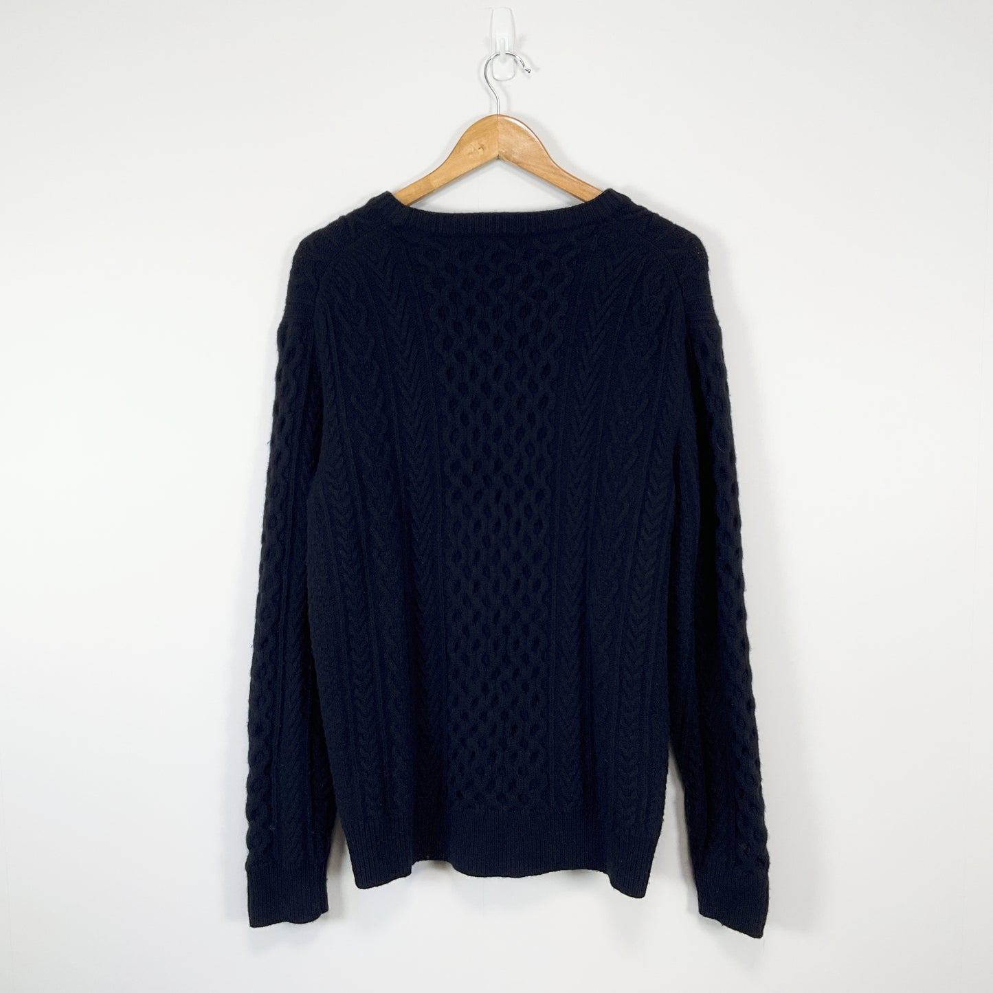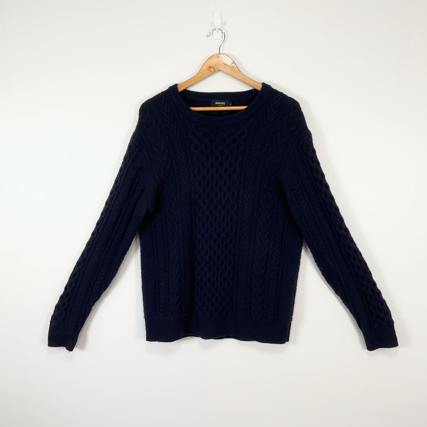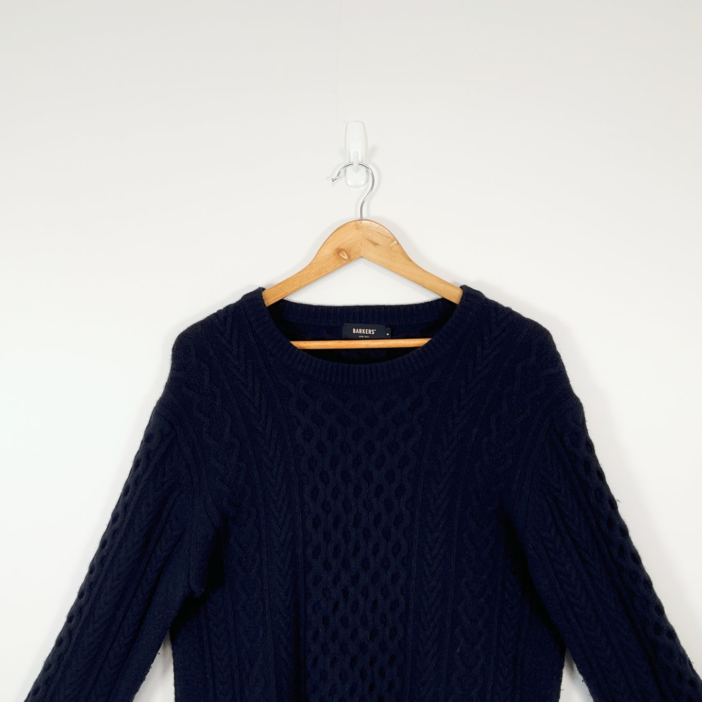 Barkers - Navy Blue Cable Knit Merino Sweater