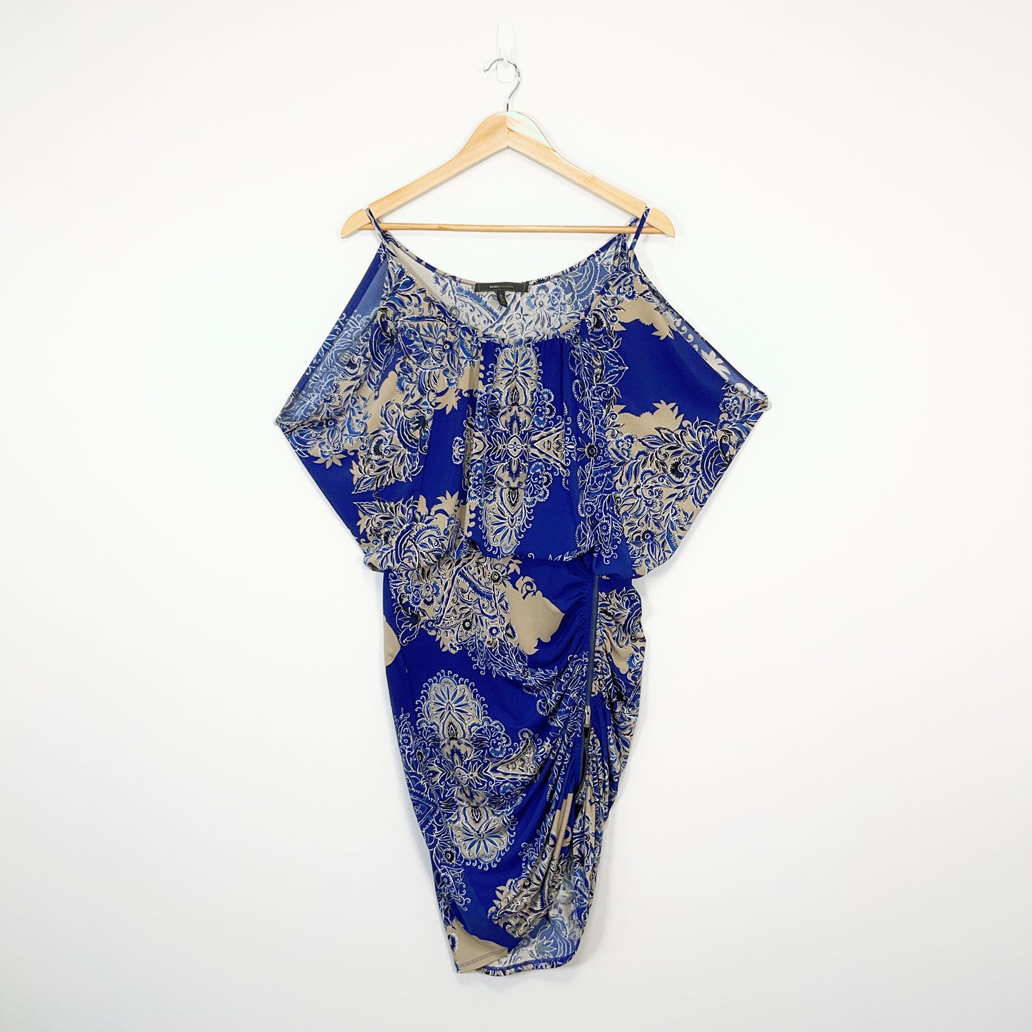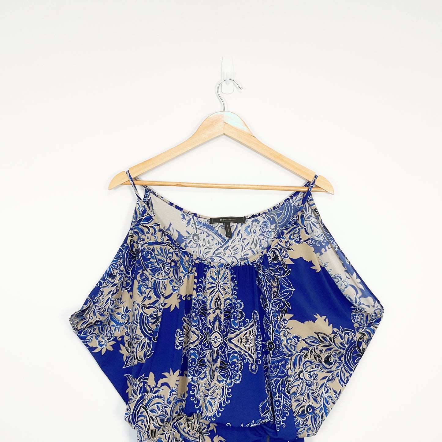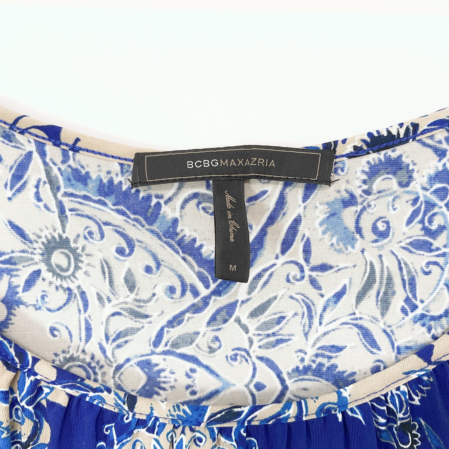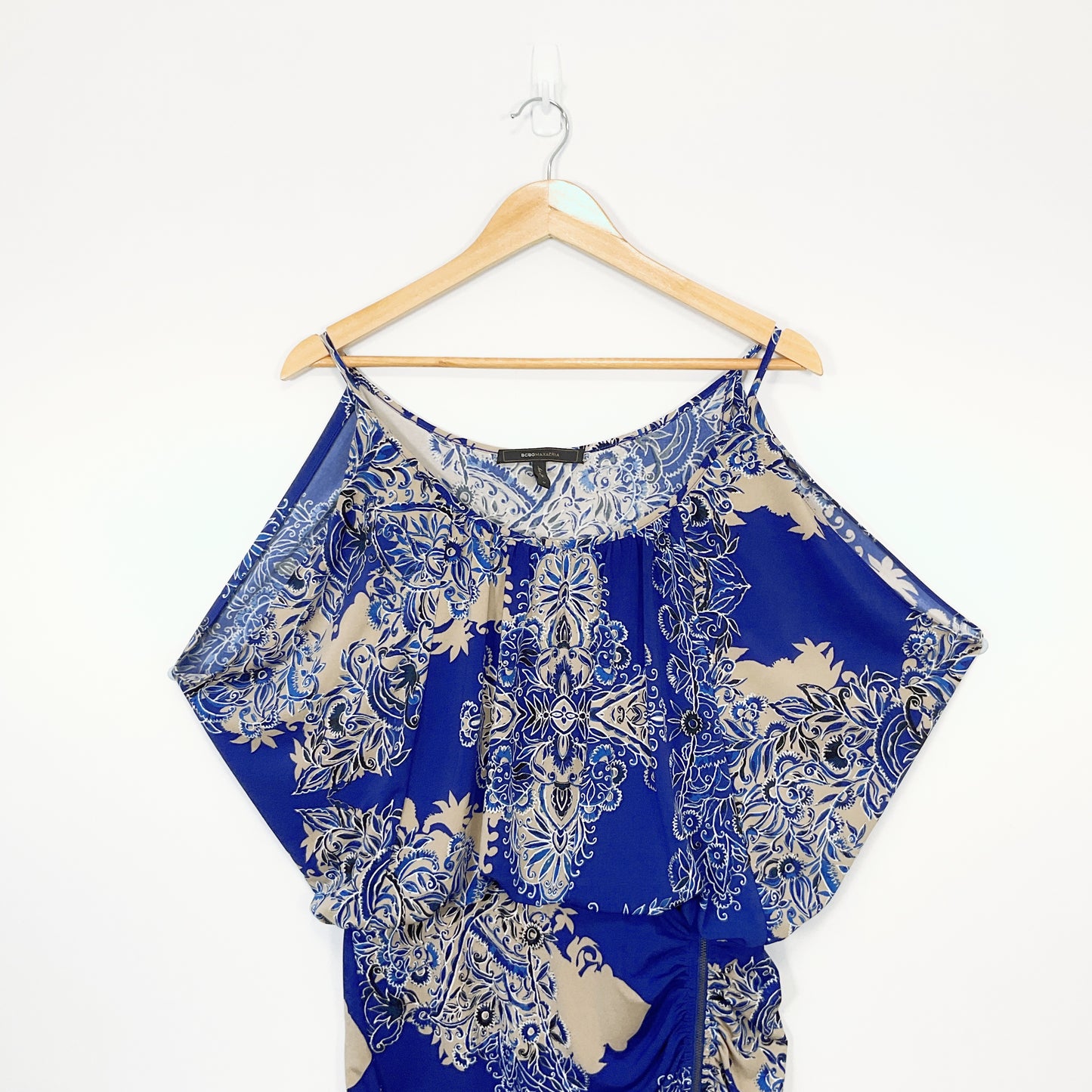 Elevate your style with this stunning floral printed midi dress from BCBG MAXAZRIA. Crafted from a comfortable blend of 94% polyester and 6% spandex, this dress offers a flattering fit with just the right amount of stretch. The beautiful floral design in vibrant blue hues makes it perfect for both casual and semi-formal occasions. With a very good condition, itβs ready to wear and sure to turn heads.