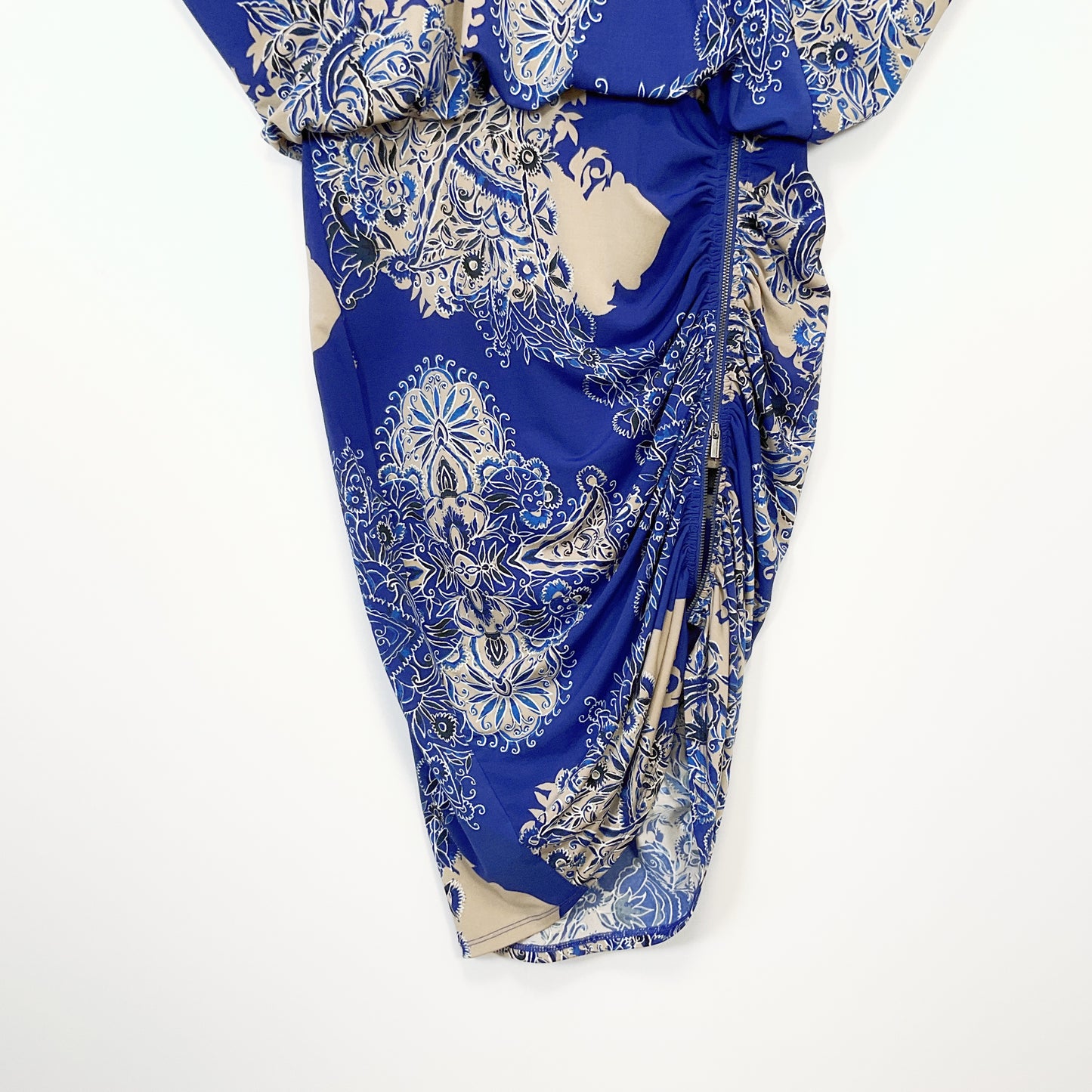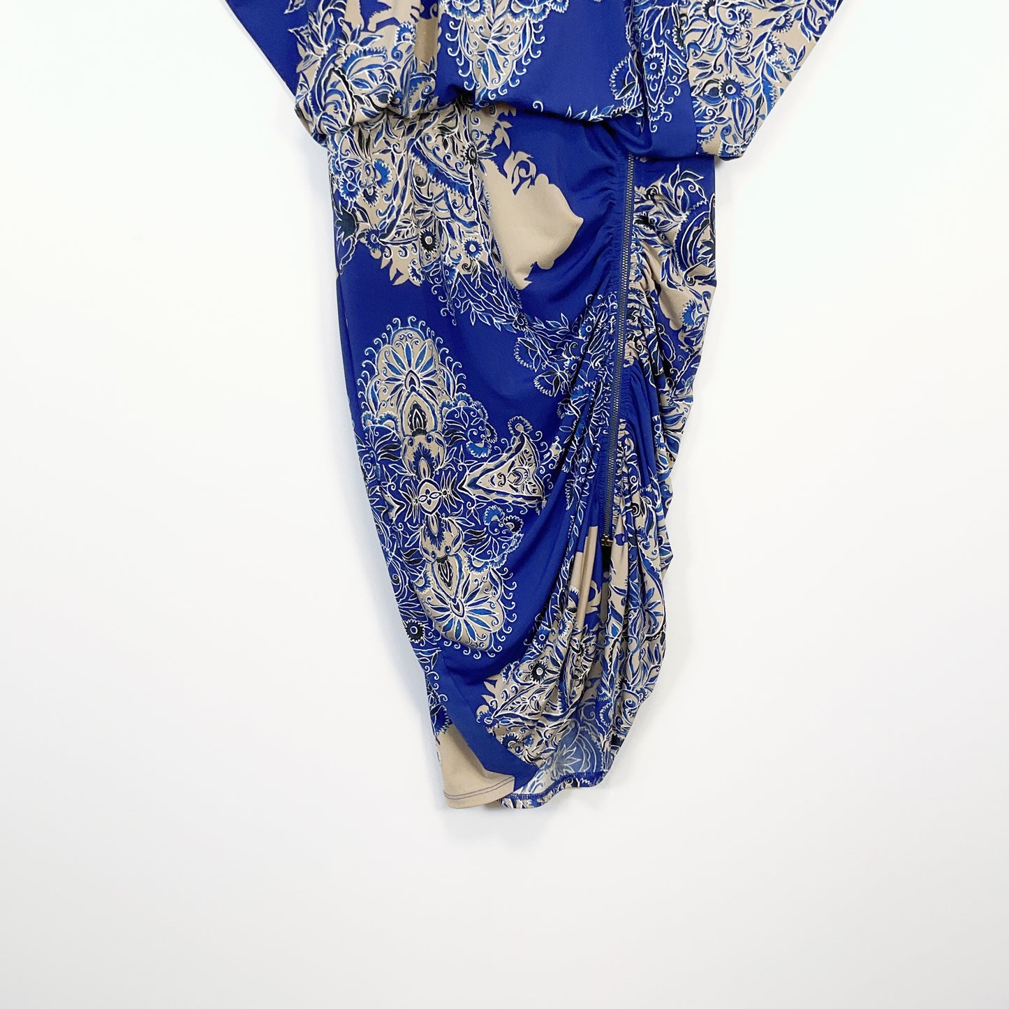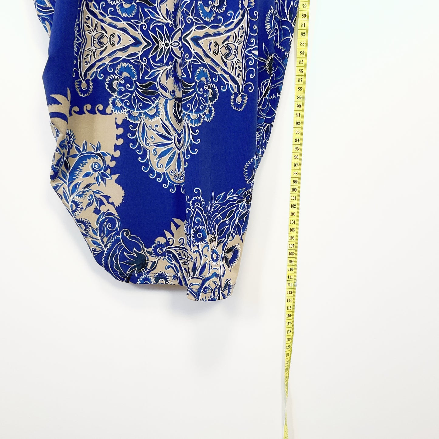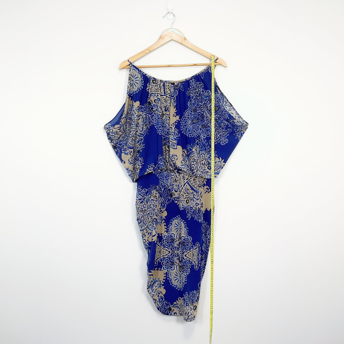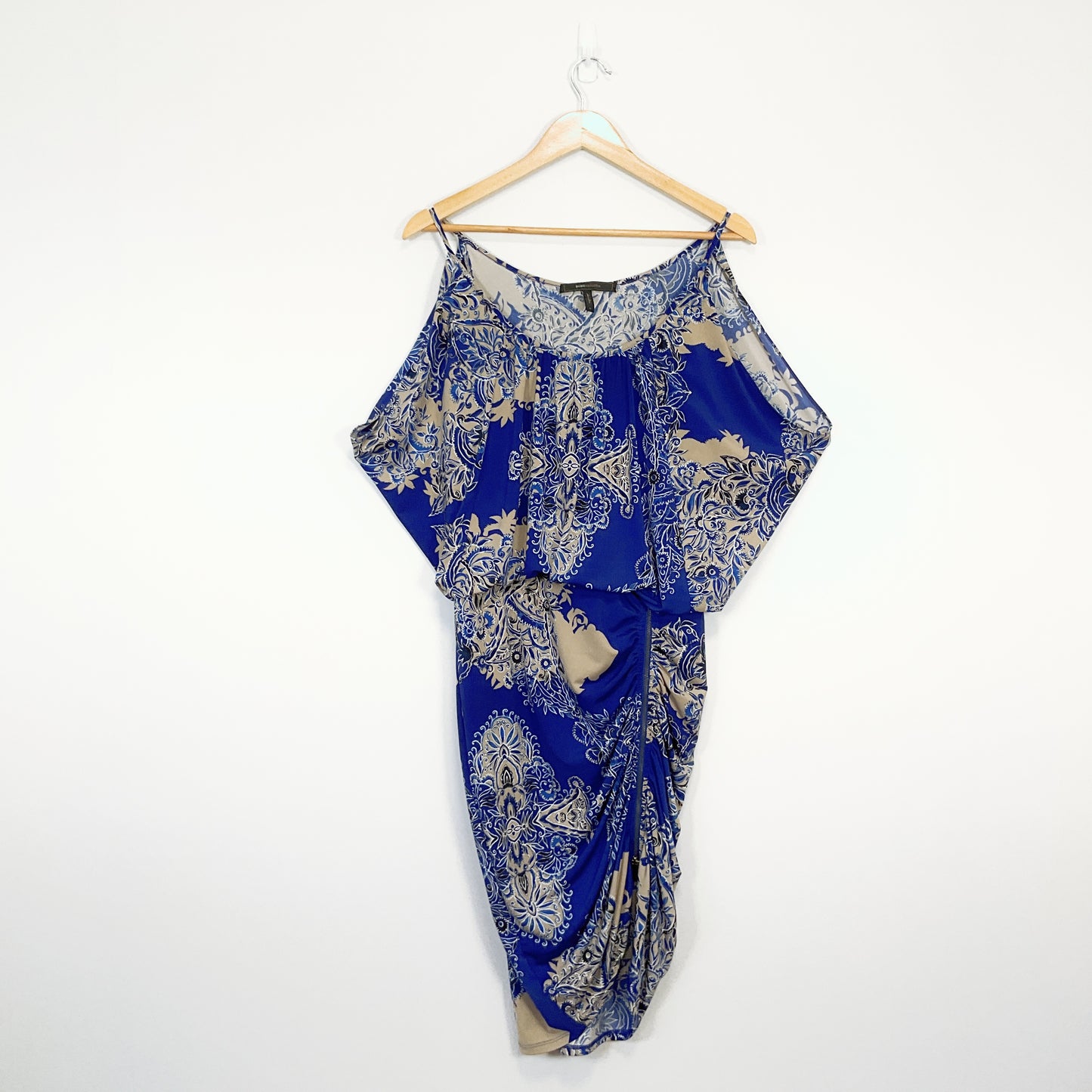 Elevate your style with this stunning floral printed midi dress from BCBG MAXAZRIA. Crafted from a comfortable blend of 94% polyester and 6% spandex, this dress offers a flattering fit with just the right amount of stretch. The beautiful floral design in vibrant blue hues makes it perfect for both casual and semi-formal occasions. With a very good condition, itβs ready to wear and sure to turn heads.