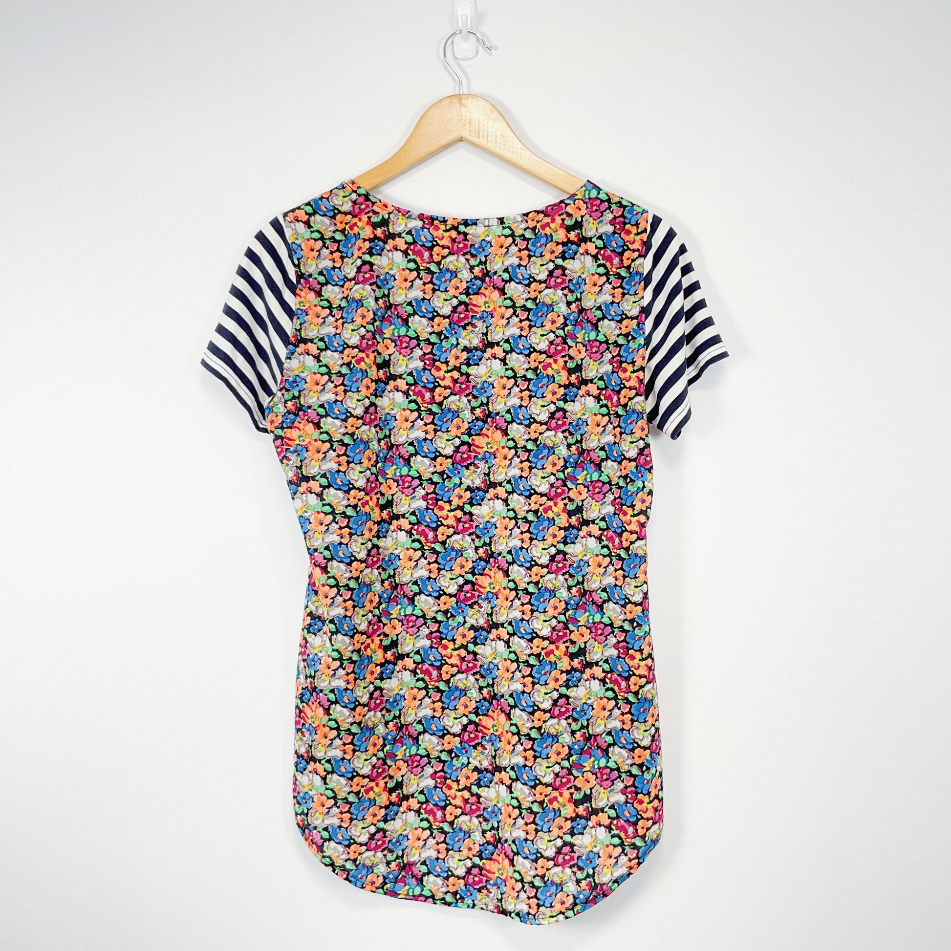 Add a touch of vibrant style to your wardrobe with the Charlo Floral Stripe Tee. This playful top combines bold floral prints with classic stripes, creating a unique and eye-catching design. Crafted from soft, breathable fabric, it offers comfort and versatility.