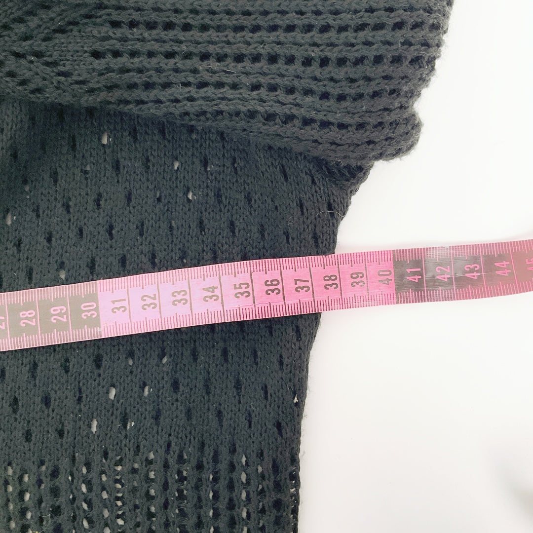 Black crochet style long sleeve cover-up with tie front. Lightweight and breathable, perfect as a beach/swimwear cover-up or for layering over summer outfits. Stylish and versatile piece for holidays or casual wear.