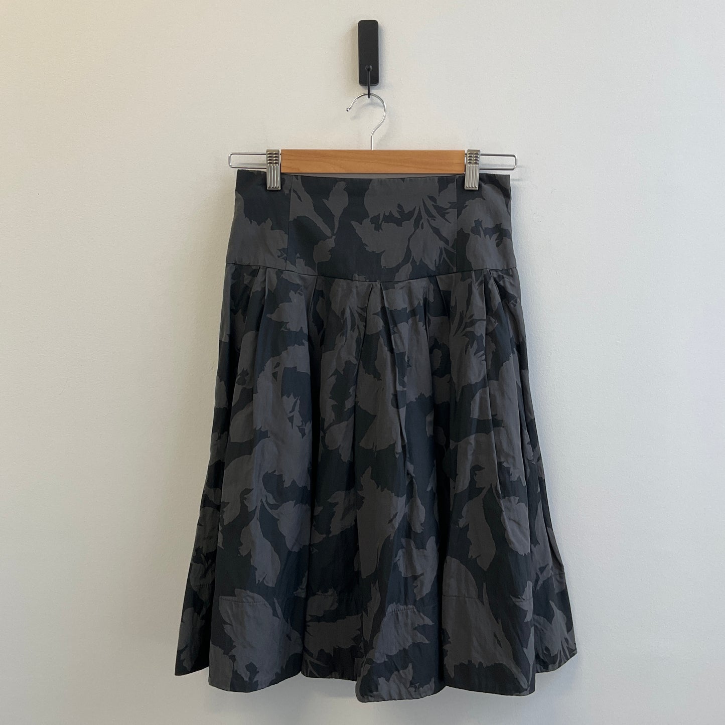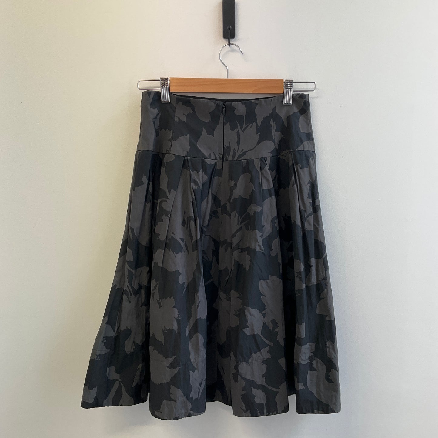 Lovely floral skirt by Cue. Size 8. The skirt is black with a green floral design. Fully lined.