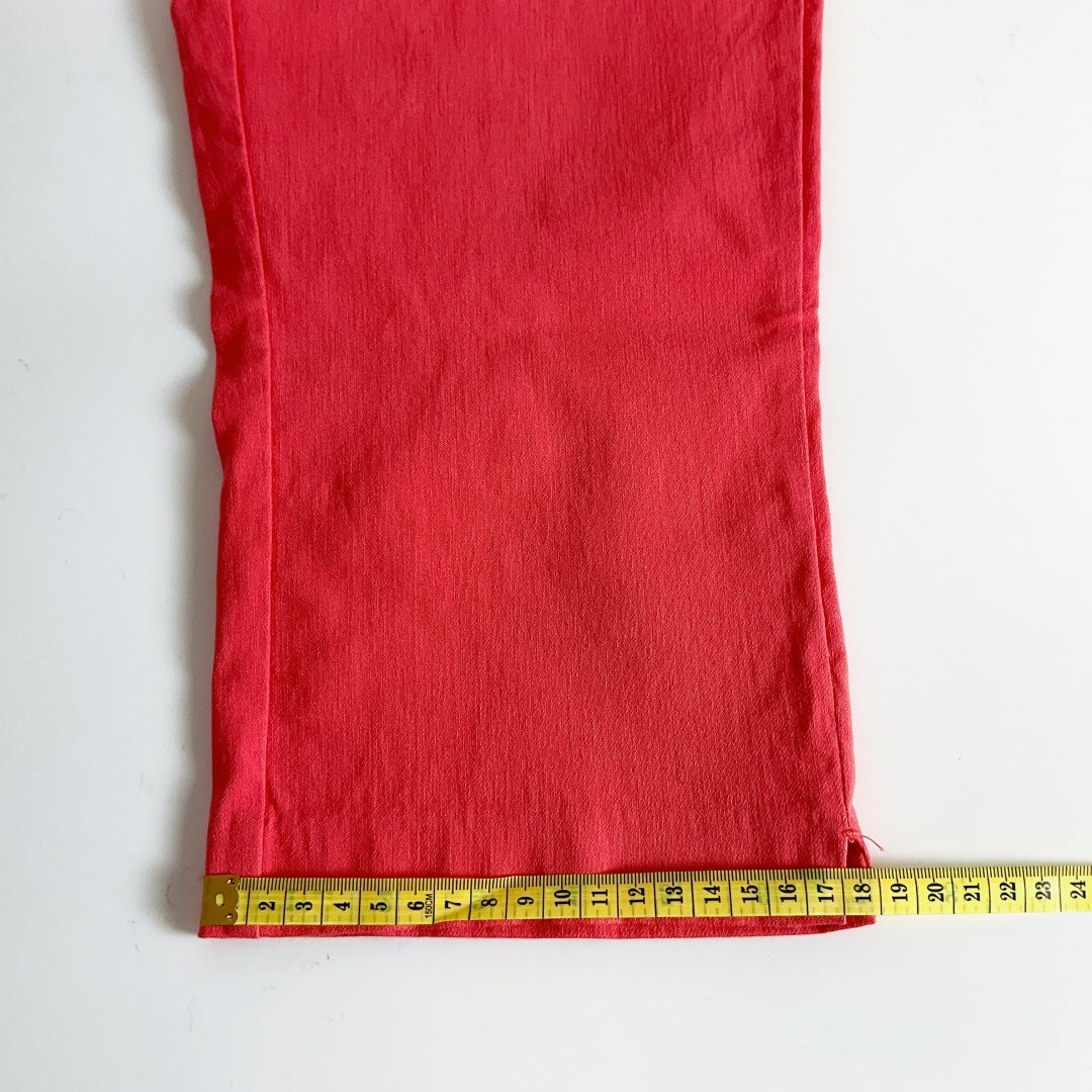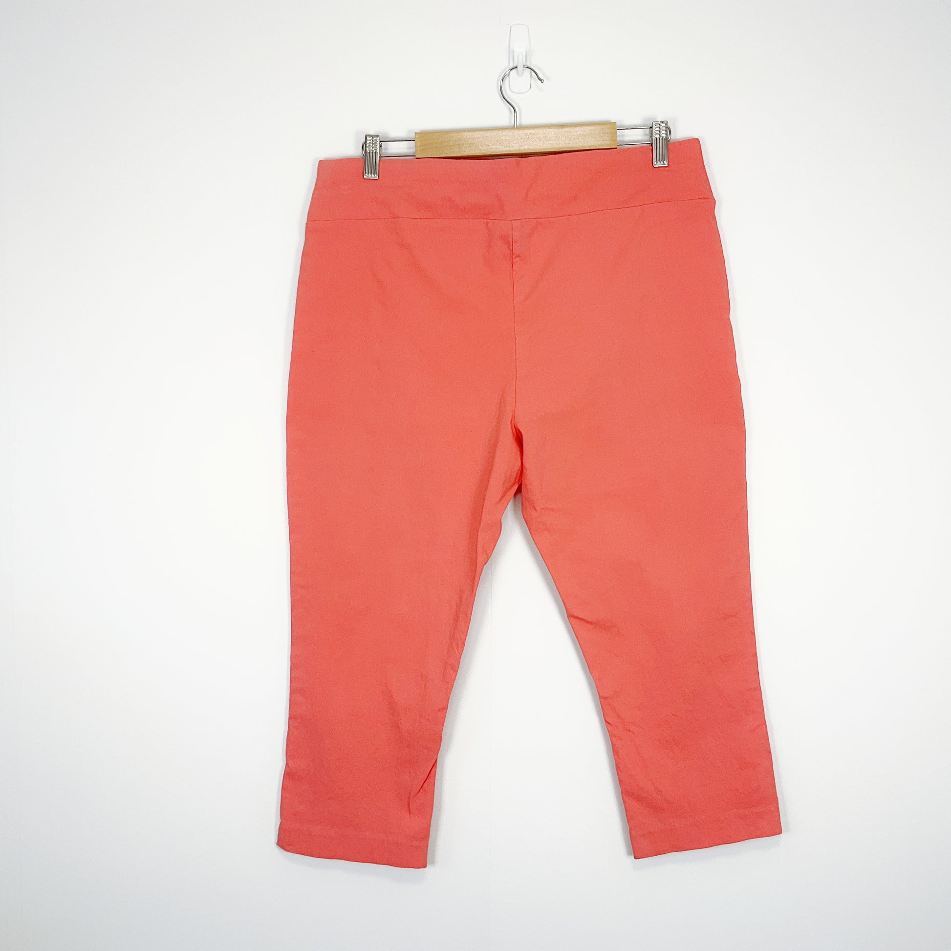 Brighten up your wardrobe with these Ella J Coral Cropped Pants, perfect for effortless everyday style. Made from a soft, stretchy blend of 74% viscose, 22% nylon, and 4% elastane, they offer both comfort and a flattering fit. In size 16 with a length of 80 cm and a 45 cm waist—please refer to the image for exact measurements. In very good condition and priced at \$25, they're a versatile addition to your casual or smart-casual lineup.