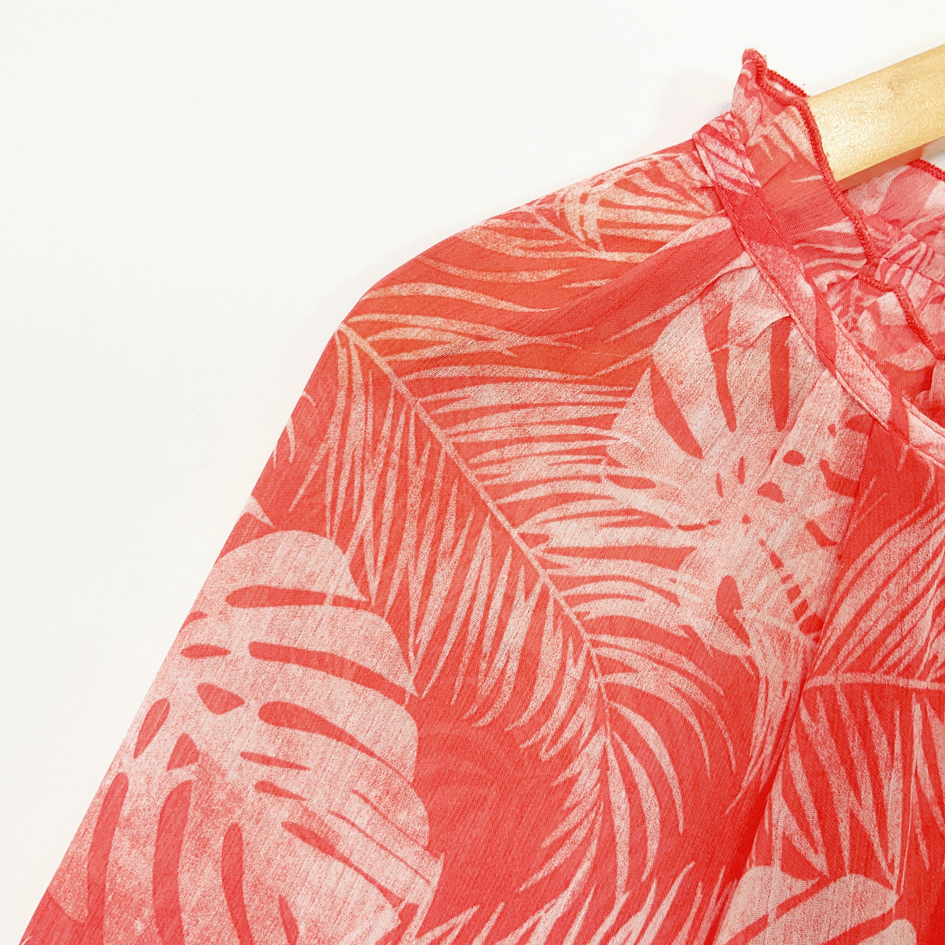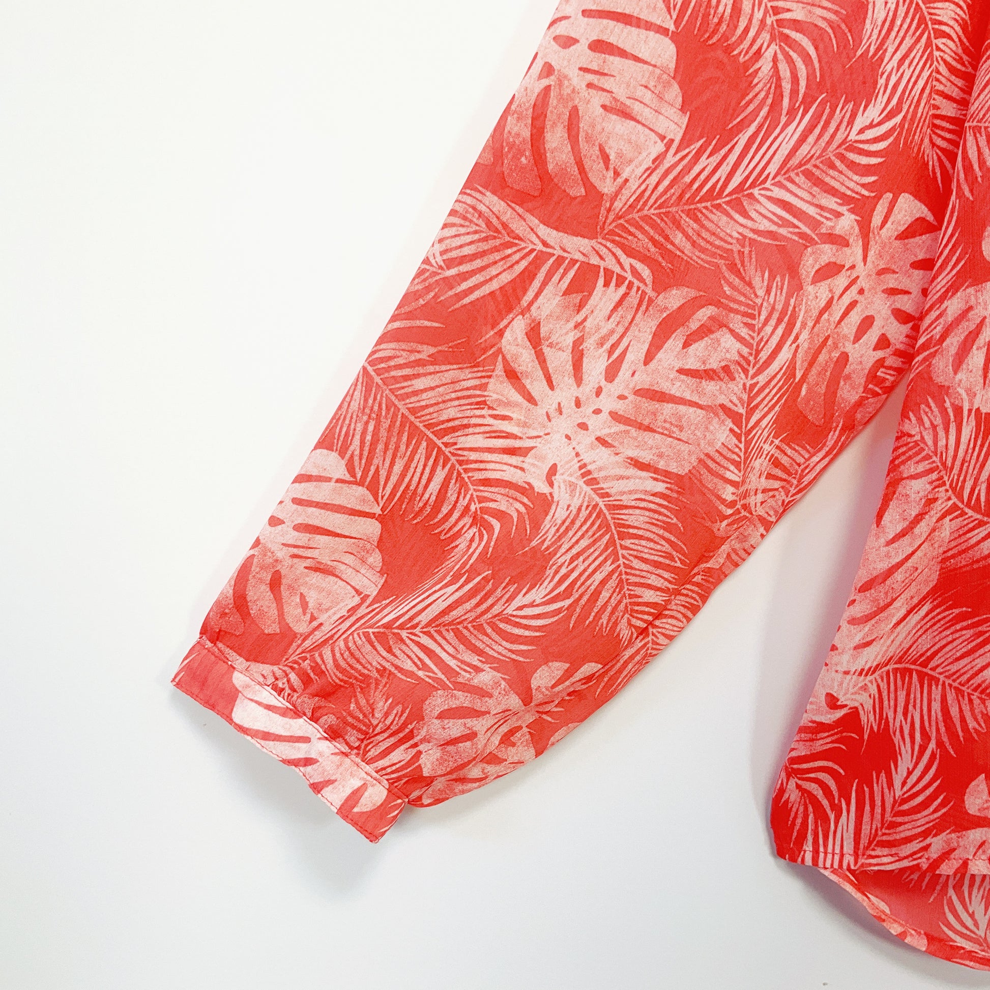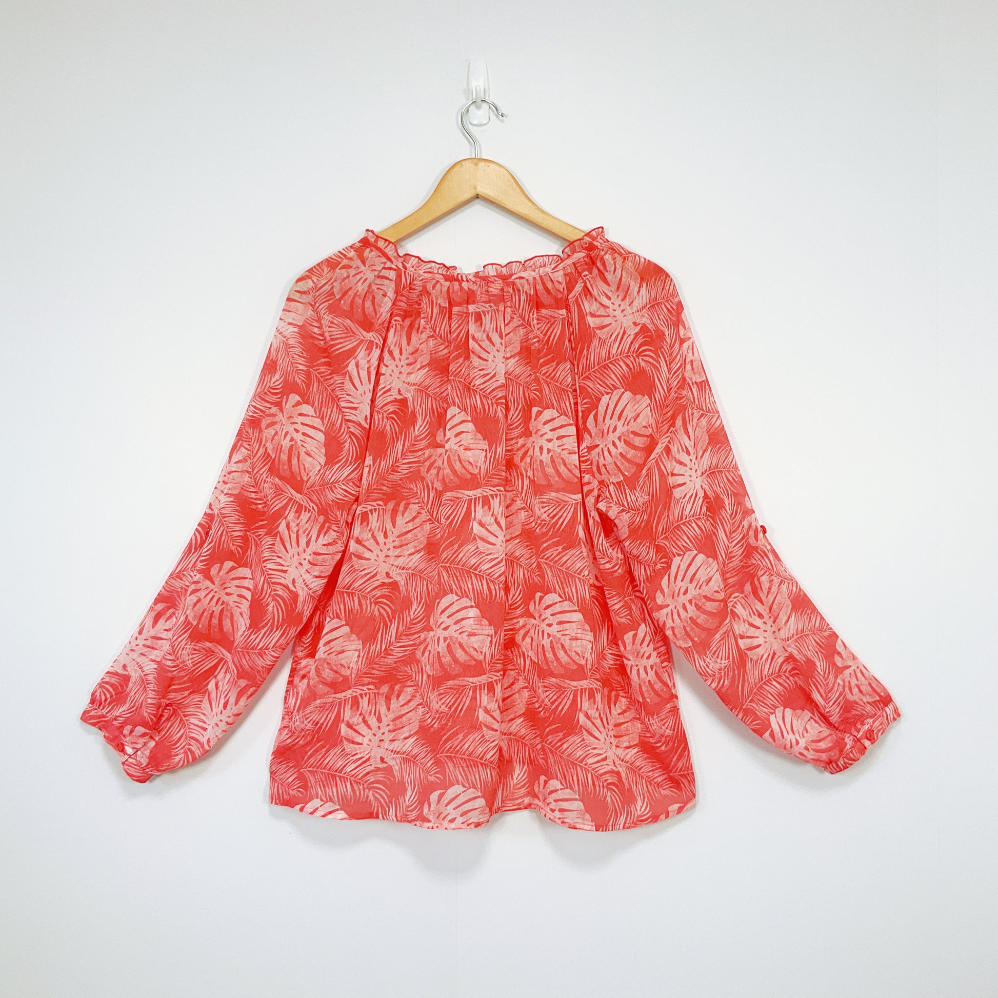Ella J - Sheer Red Leaf Print Long Sleeve Blouse