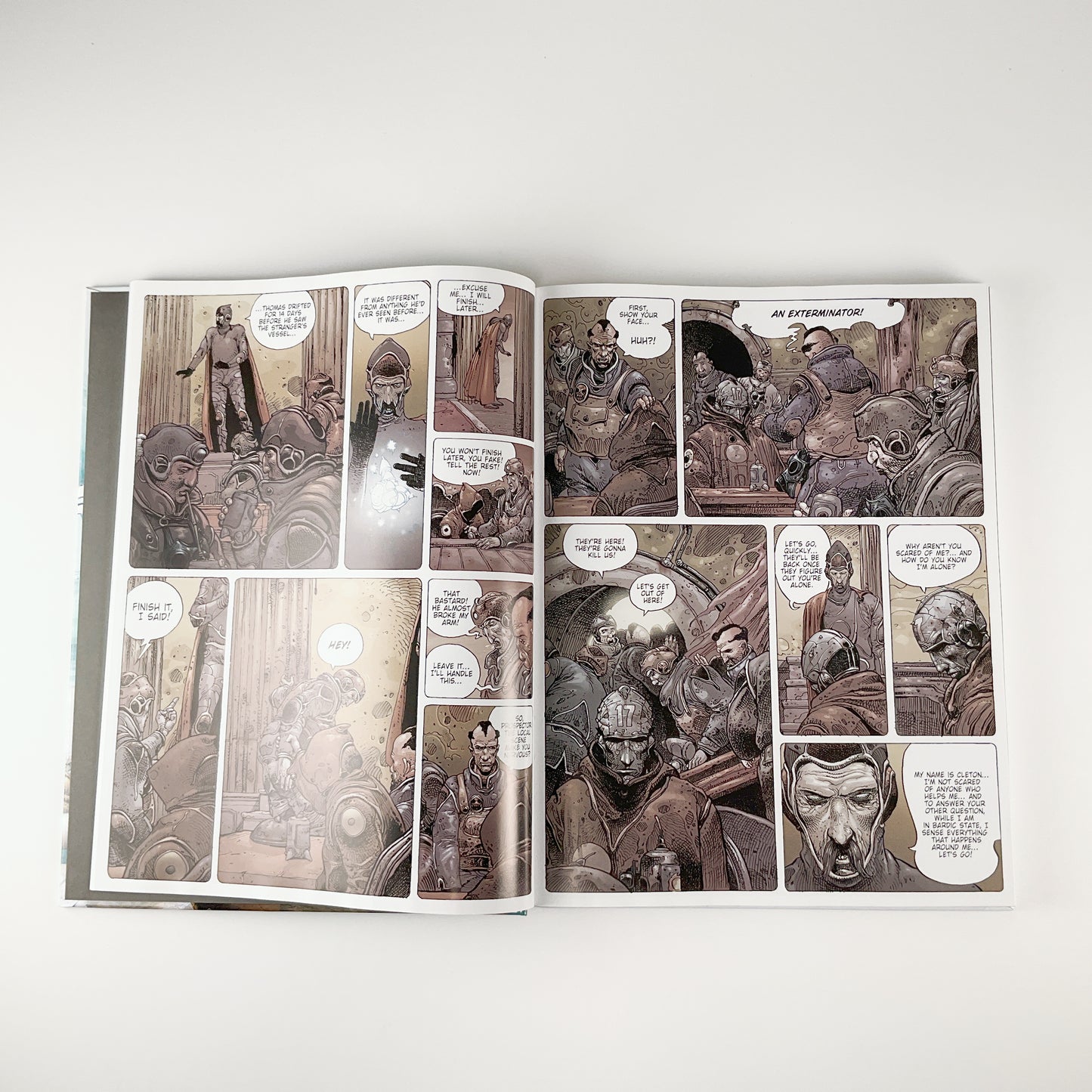 A graphic novel set in a dystopian future where a brutal regime controls society through a mix of technology and oppression. The plot centers around a mysterious and ruthless figure known as Exterminator 17, who seeks to challenge the status quo and uncover dark secrets behind the regime's power. The narrative combines elements of sci-fi, action, and political intrigue, exploring themes of rebellion and the struggle for freedom.