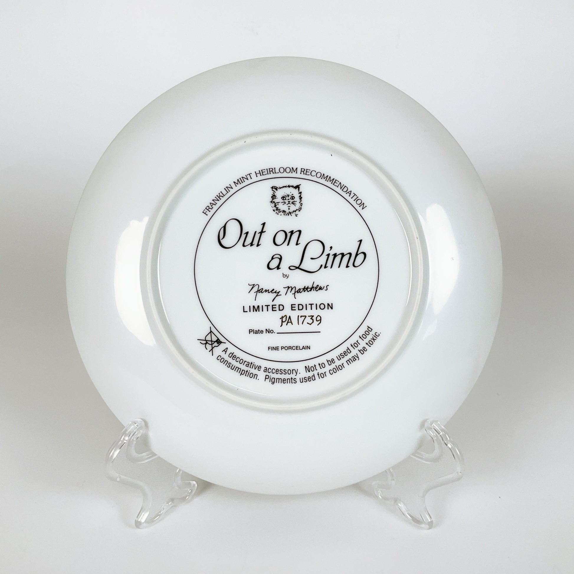 Franklin Mint - "Out on a Limb" by Nancy Matthews Decorative Plate featuring an adorable cat lounging on a tree branch.