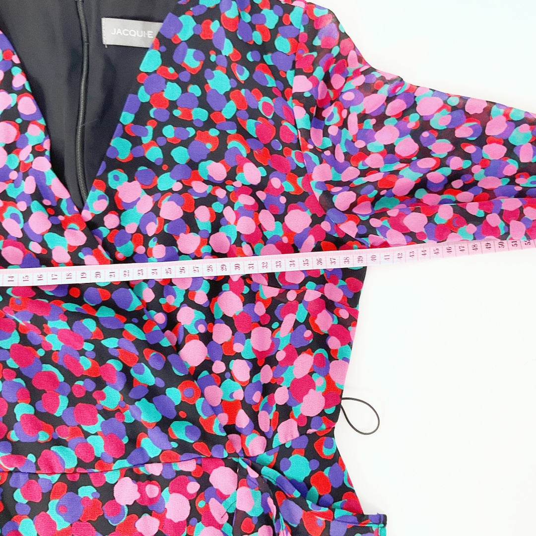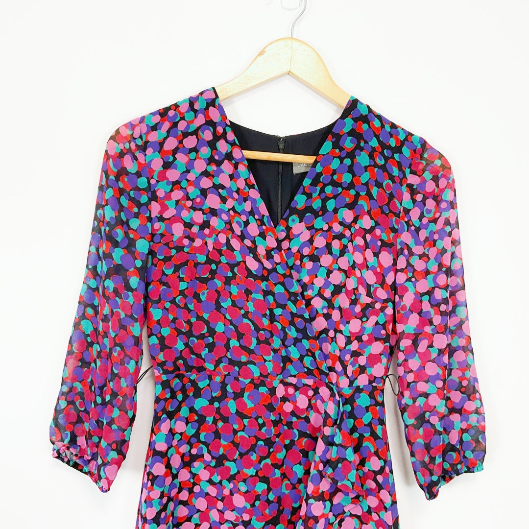 A fun and easy-to-wear piece for everyday or casual occasions. Featuring a wrap design and midi length, it defines the waist naturally while offering a comfortable, relaxed fit. Crafted from lightweight fabric, it feels breezy and easy to move in. The colourful dot pattern adds a playful touch, making it a cheerful addition to your wardrobe.