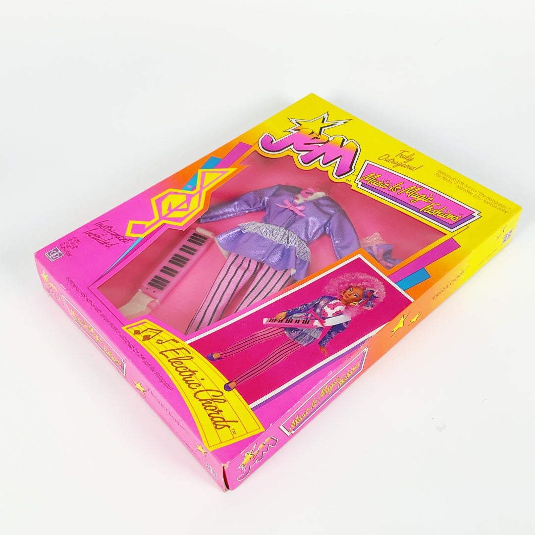 A highly sought-after Jem & The Holograms outfit from the 1980s cartoon & fashion doll line. Comes boxed with vibrant neon graphics and matching costume. Great for Jem collectors or nostalgia fans.