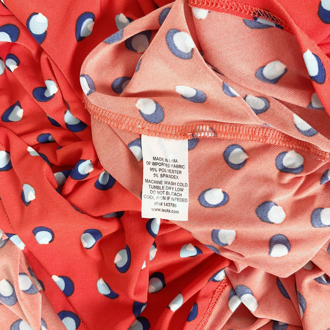 This vibrant sleeveless wrap dress by Leota features a flattering V-neckline and a self-tie waist that accentuates your figure. The red base is dotted with a subtle polka-dot motif, and the fabric blend of 95% polyester and 5% spandex offers both a soft drape and gentle stretch for comfort. Made in New York, this size L piece blends effortless chic with a playful pattern.