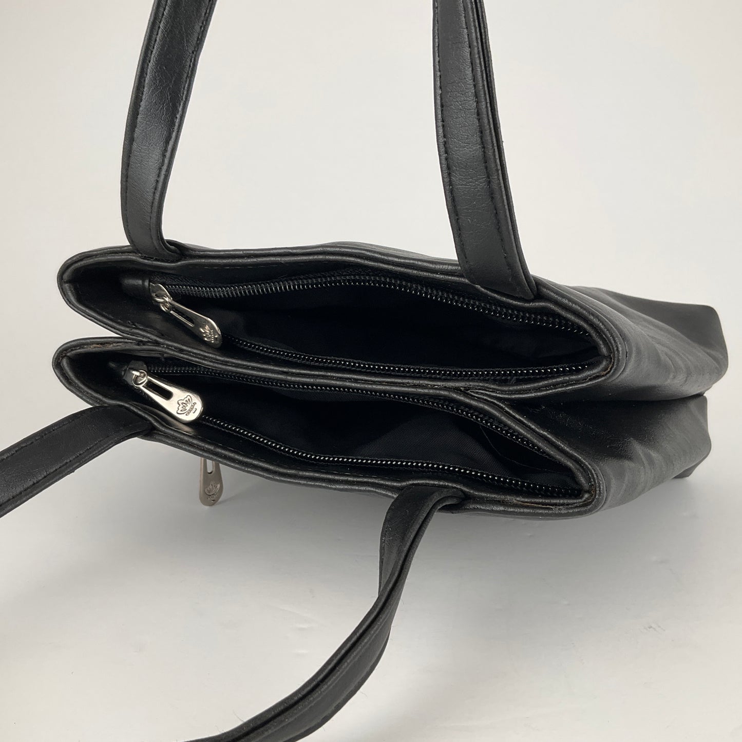 Lovely small sized ladies handbag by Maurio. The bag has two zippered compartments to keep your items secure.