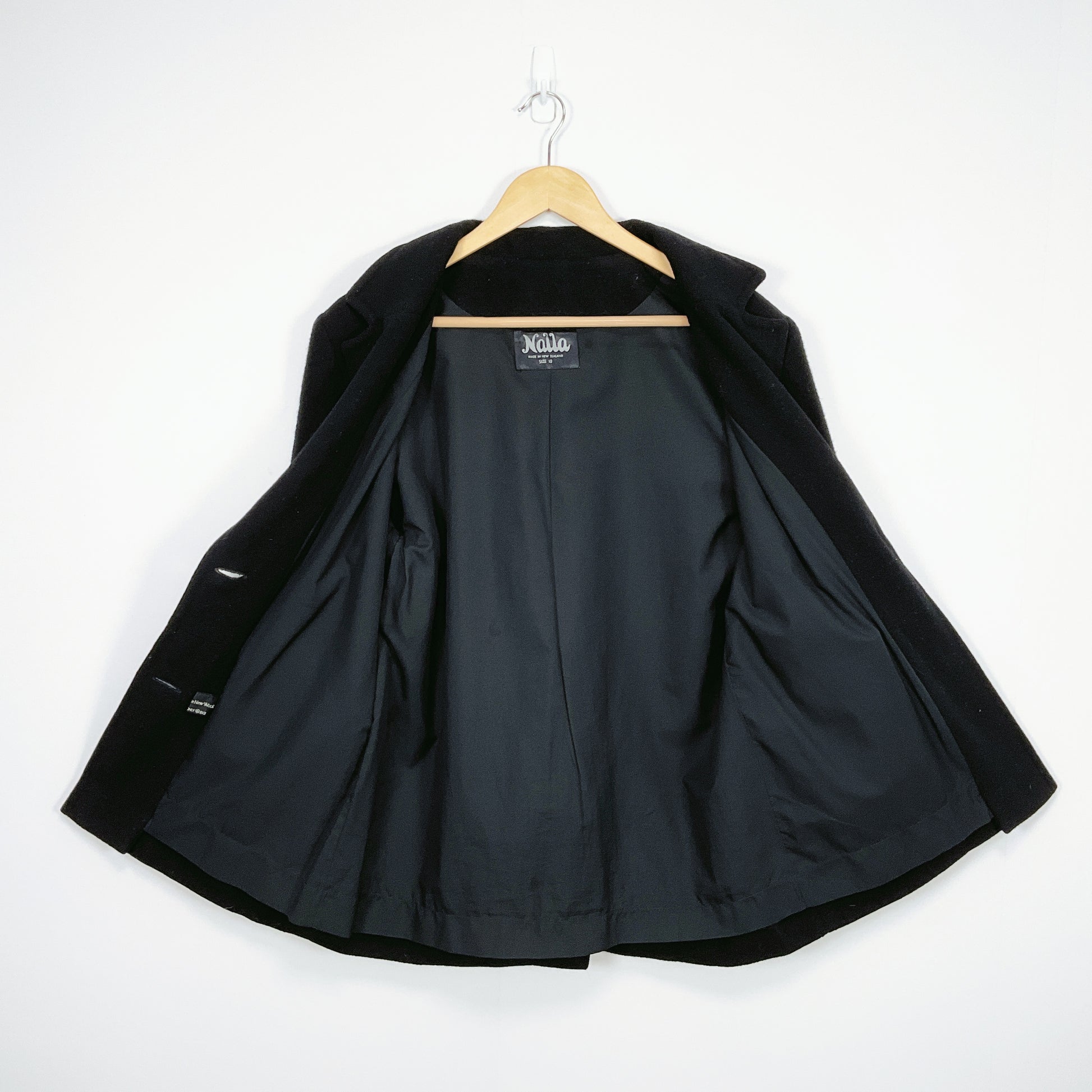 Stay warm in timeless style with this Nalla Black Wool Short Coat. Made from pure new wool, this size 10 coat offers classic elegance with a structured silhouette and a flattering fit. Measuring 79 cm in length and 50 cm across the chest, it's in very good condition—perfect for refined layering during cooler seasons.