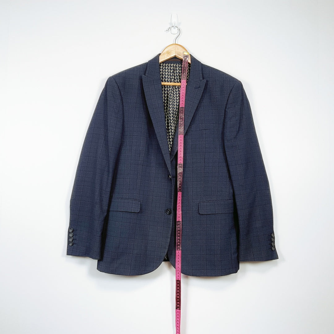 Next Tailoring-Navy Checkered Two-Button Blazer