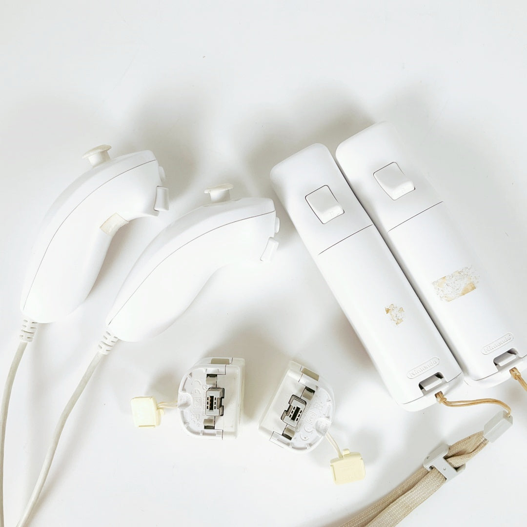 This is a complete bundle featuring a white PAL Nintendo Wii console along with two wireless Wii remotes + nunchuks + MotionPlus modules, full set of accessories, protective silicone sleeves, and four games (Monopoly, Just Dance, Wii Sports, Wii Popstar Guitar). Everything is PAL-region (suitable for New Zealand / Europe / Australia). Itโs ideal for anyone who wants a ready-to-use Wii gaming set with dual controllers and extra gear.