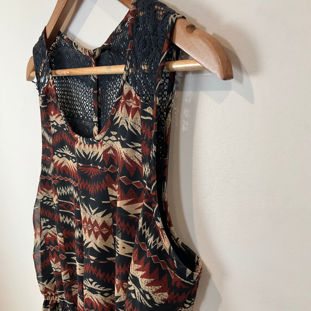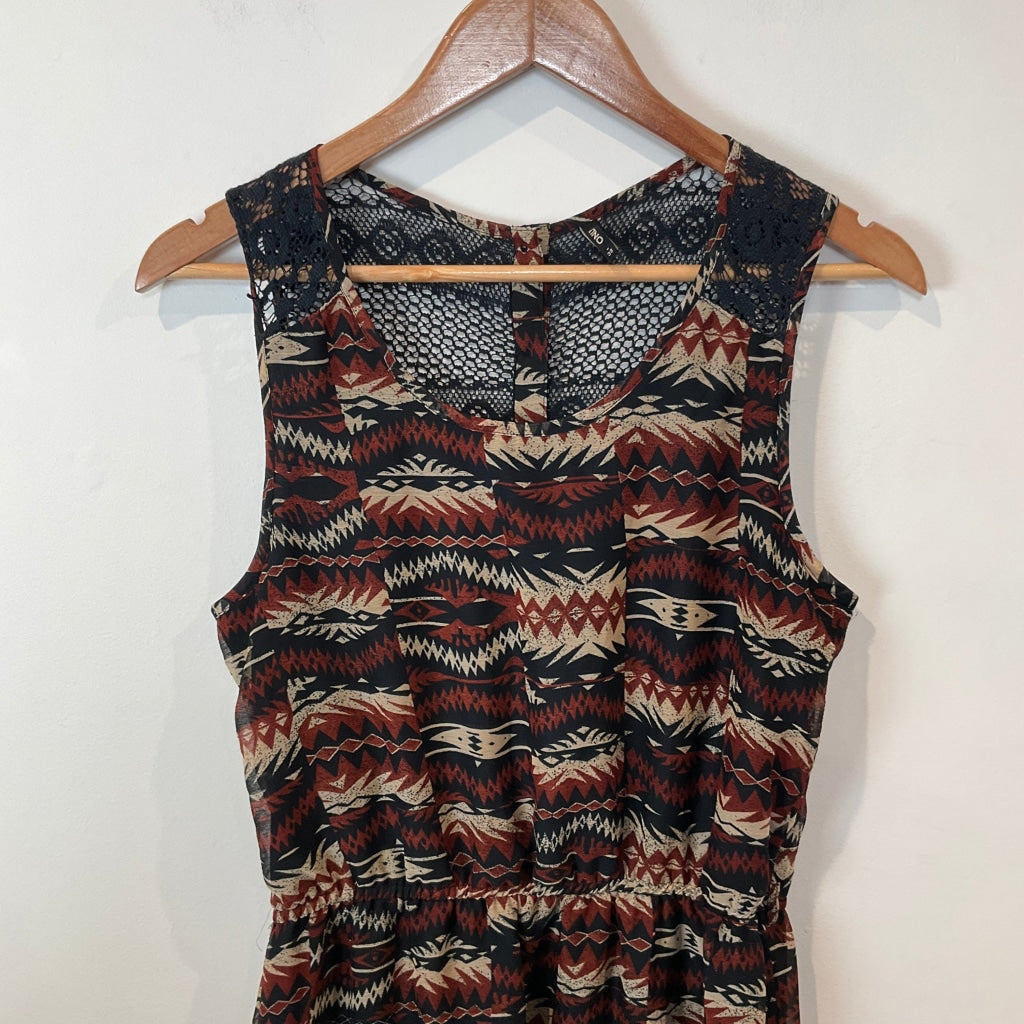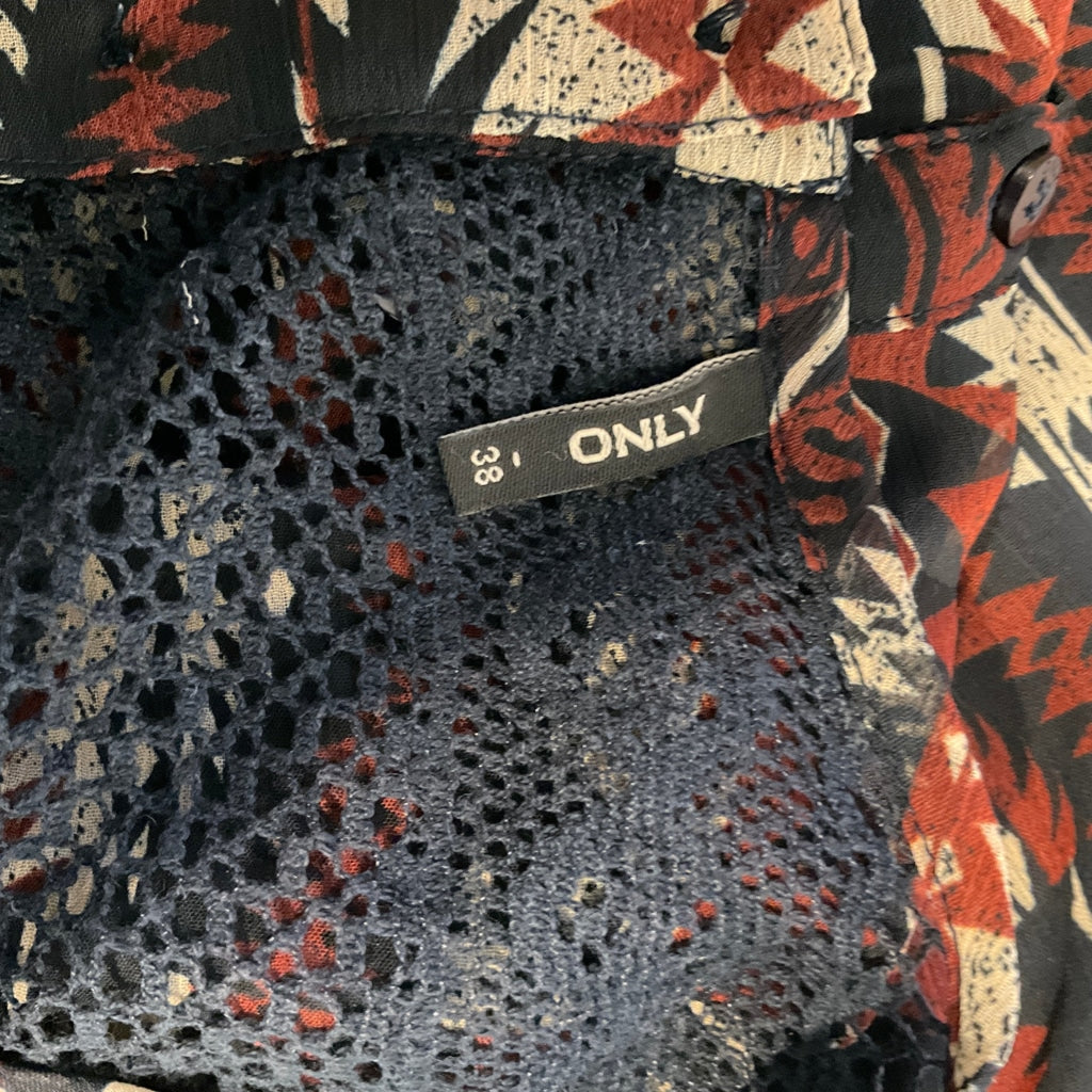 Lovely knee length dress by Only. The dress is a panel print design with lace look-alike panels on the shoulder and the back.