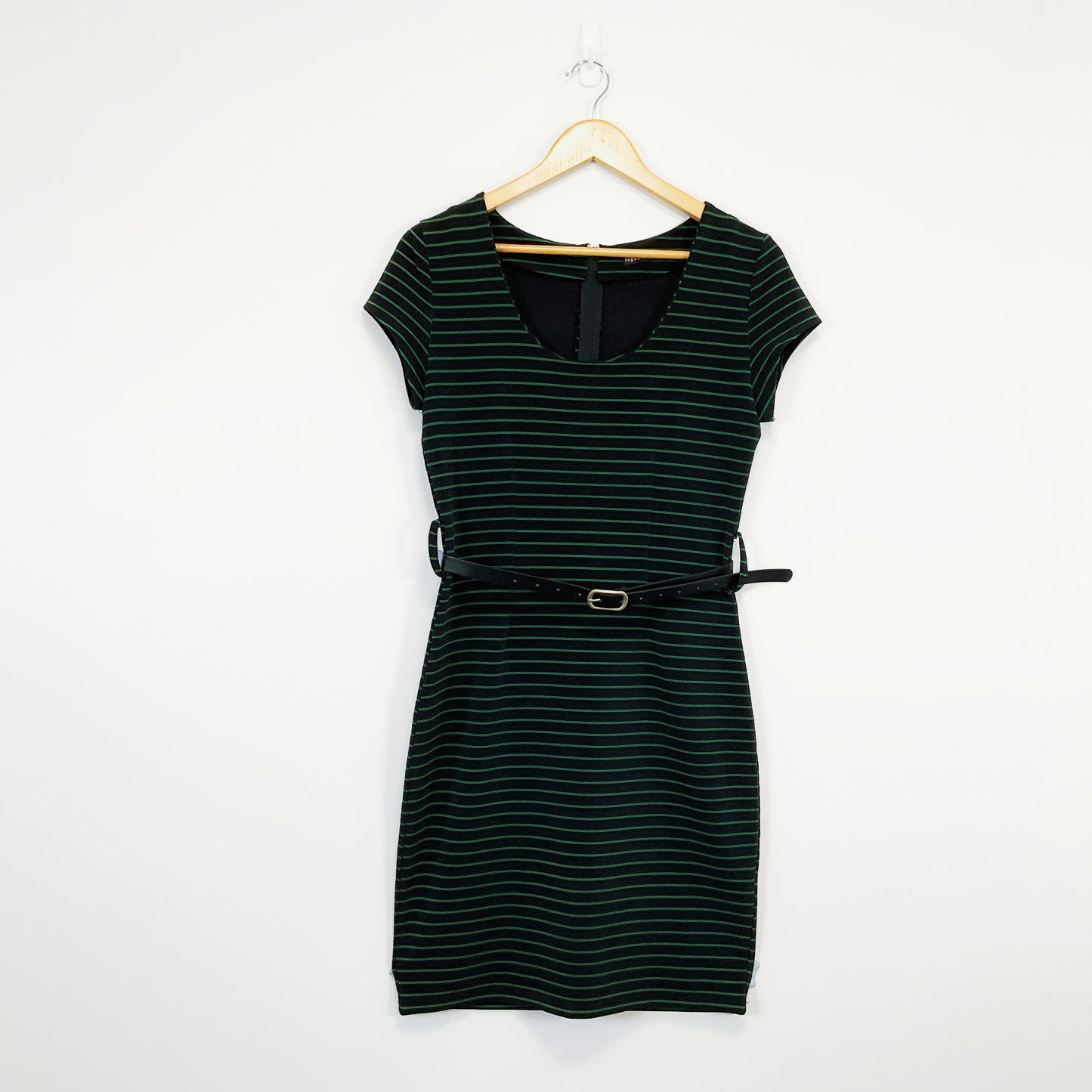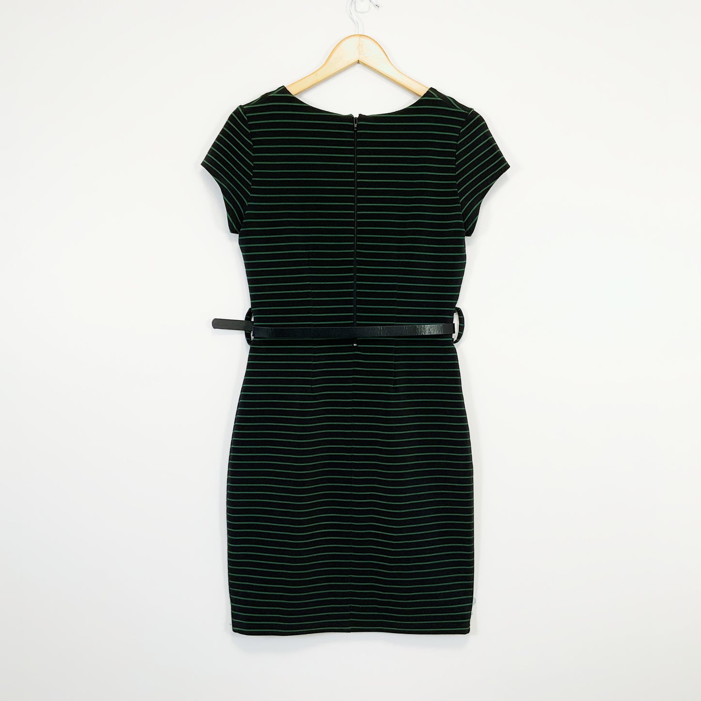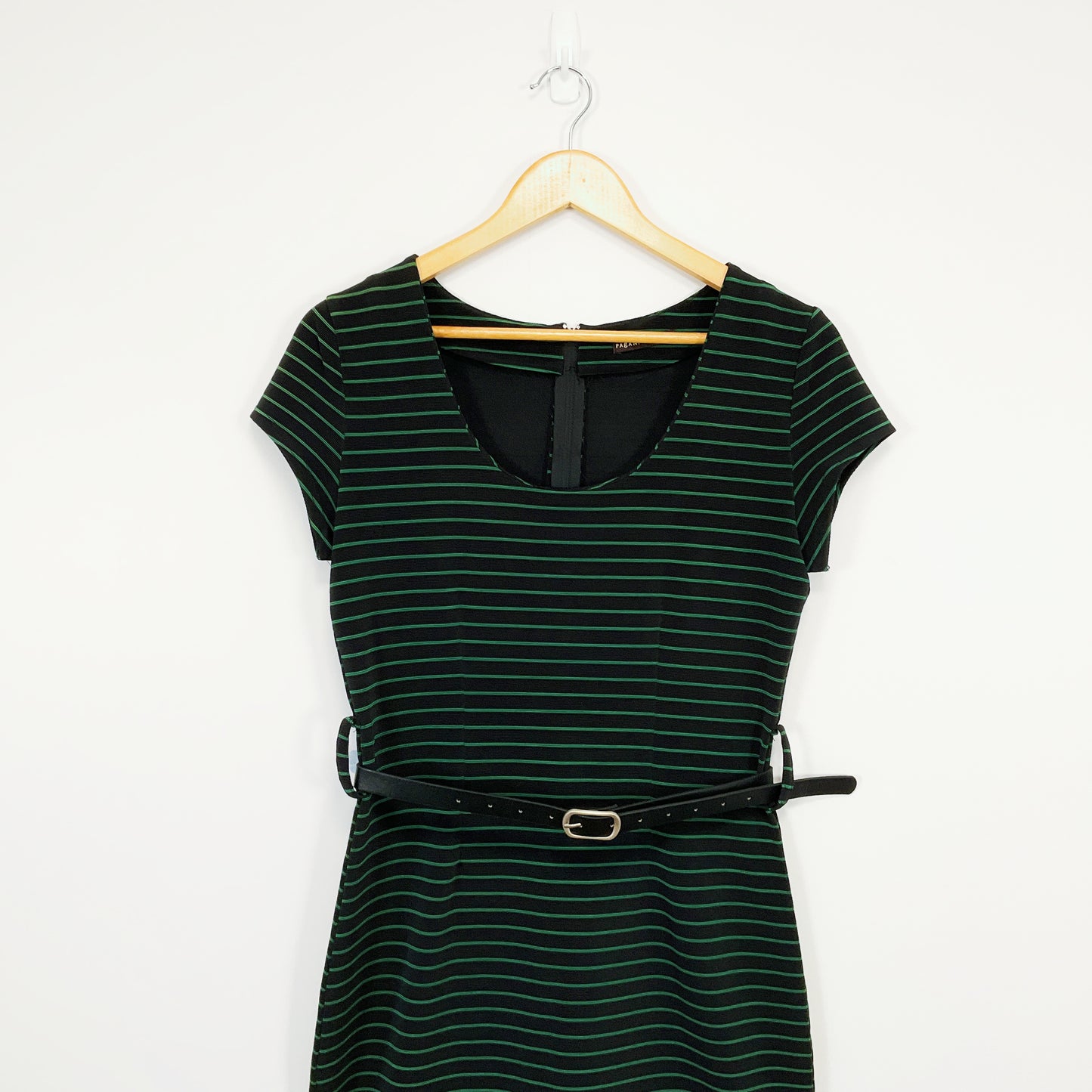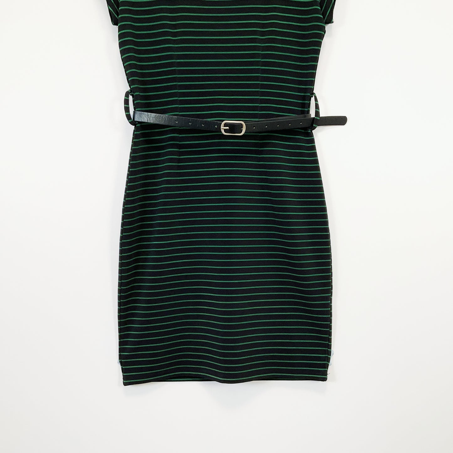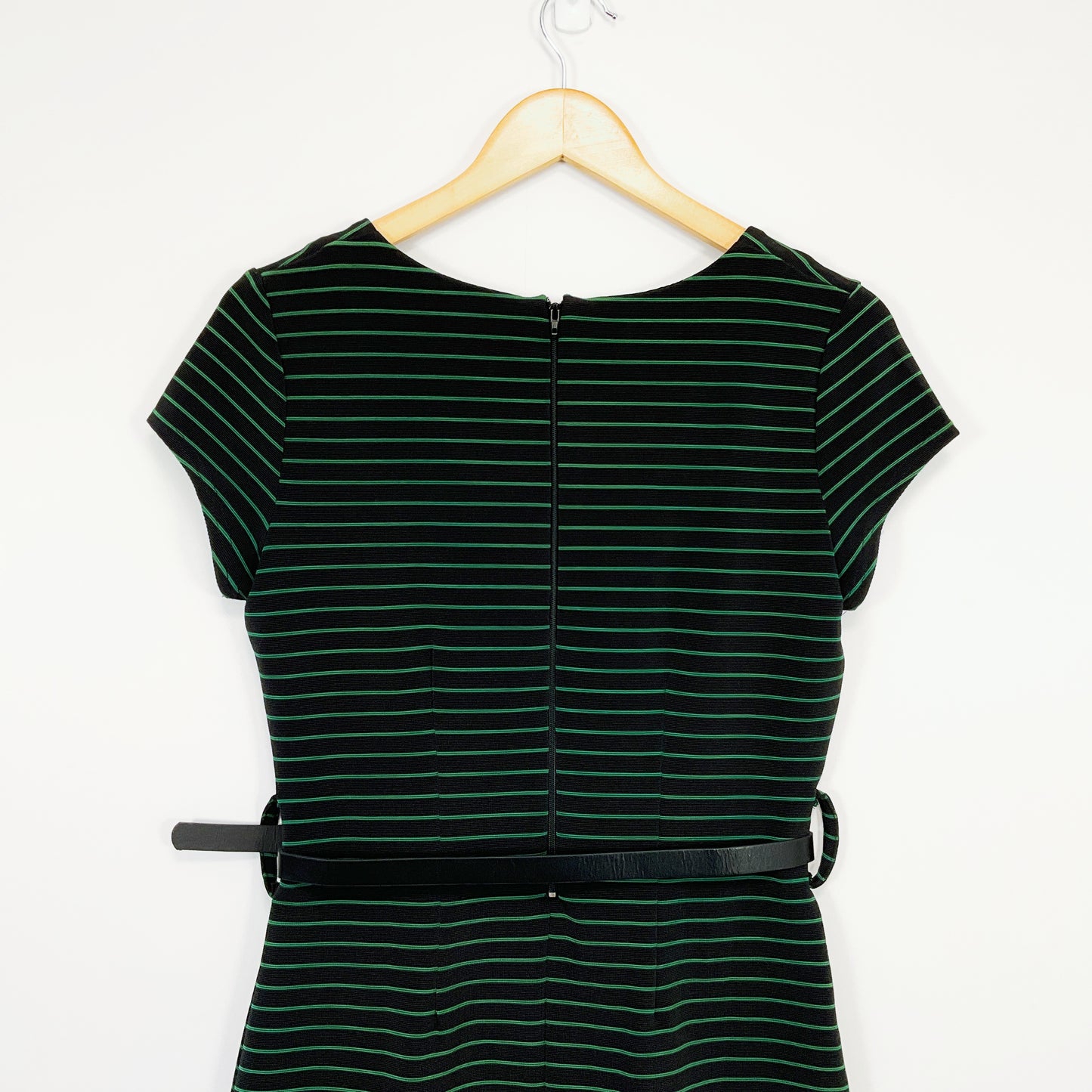 PAGANI - Stripe Shoer Sleeves Midi Dress with Belt