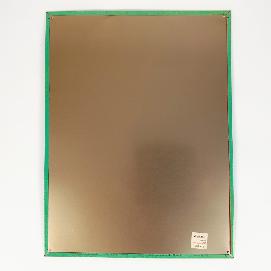 Retro advertising-style metal poster featuring Popeye in an action pose with comic-book “POW” lettering.