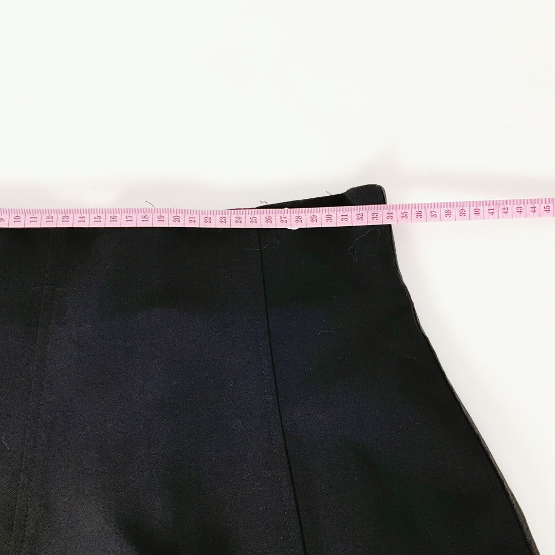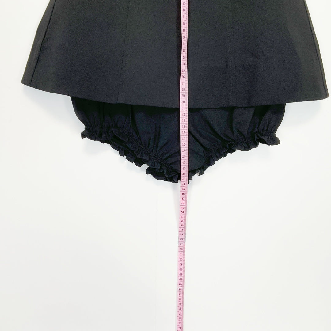 Playful yet architectural, these black mini culotte shorts from SHUSHU/TONG are a true statement piece. Designed with a flattering high-rise waist, they sit neatly and create a clean, sculpted look through the top before flaring into a structured peplum-style overlay.