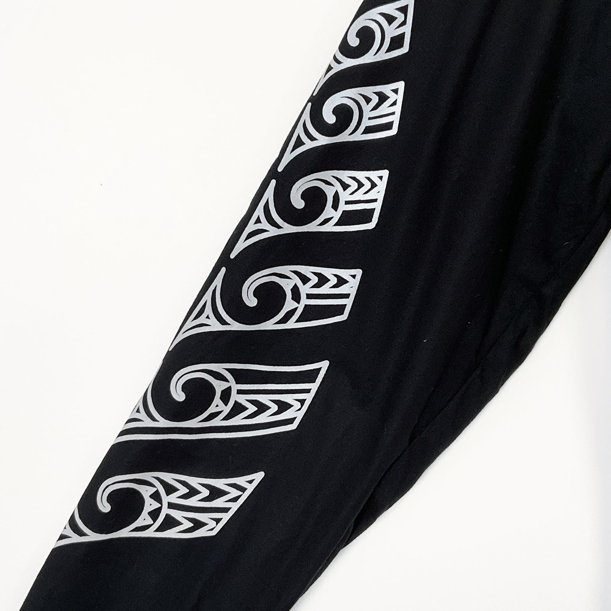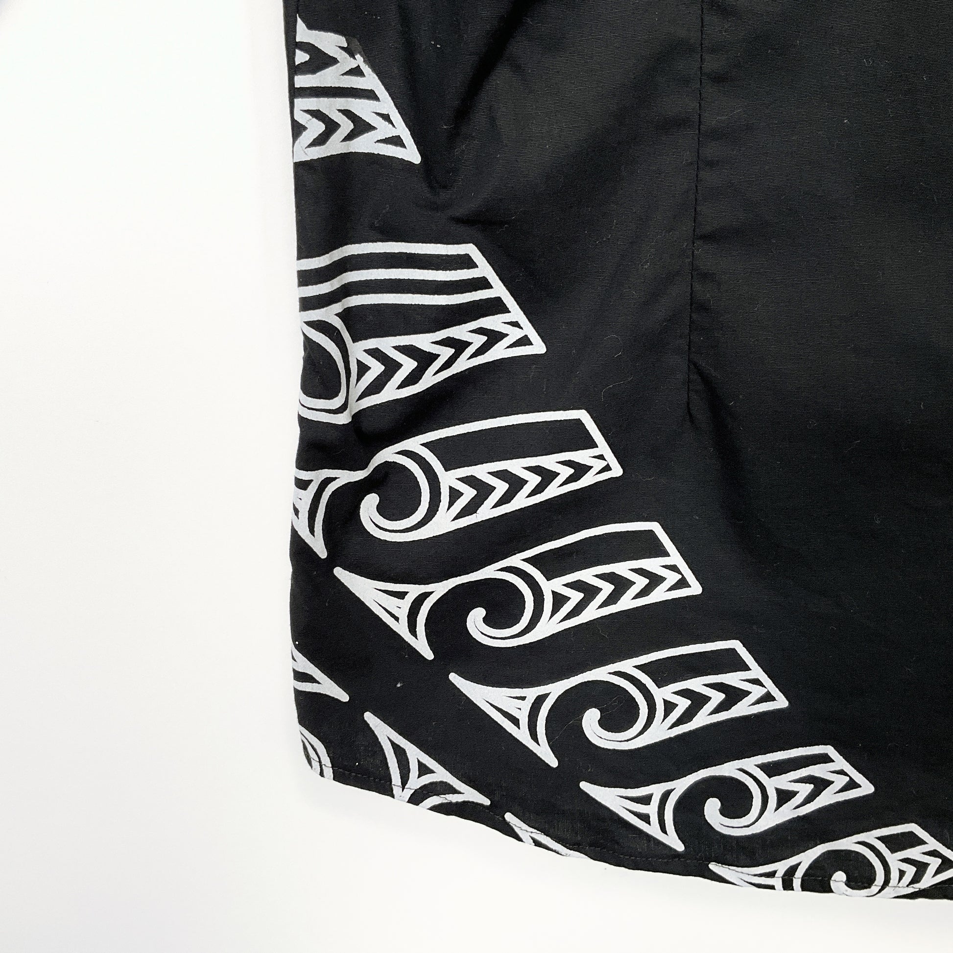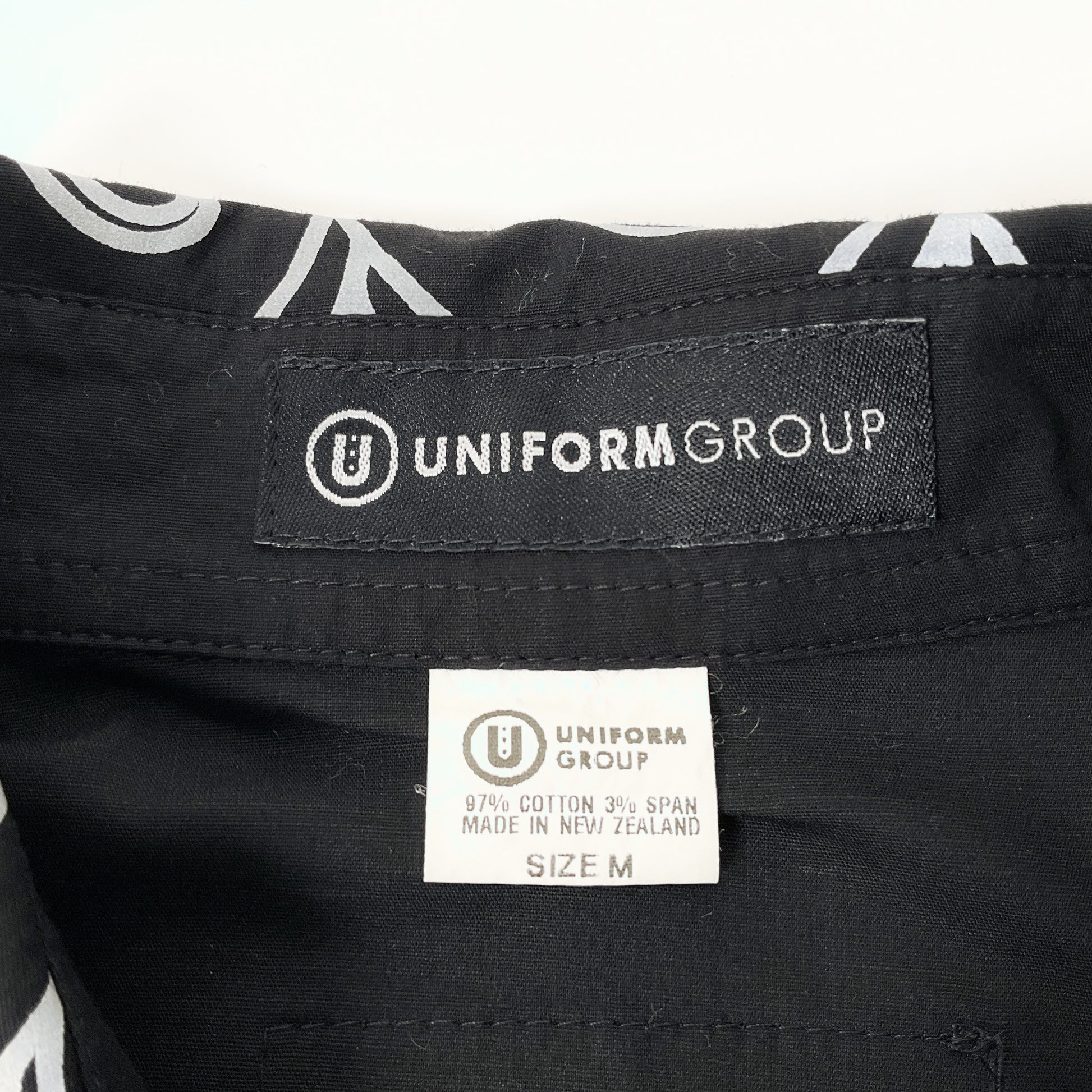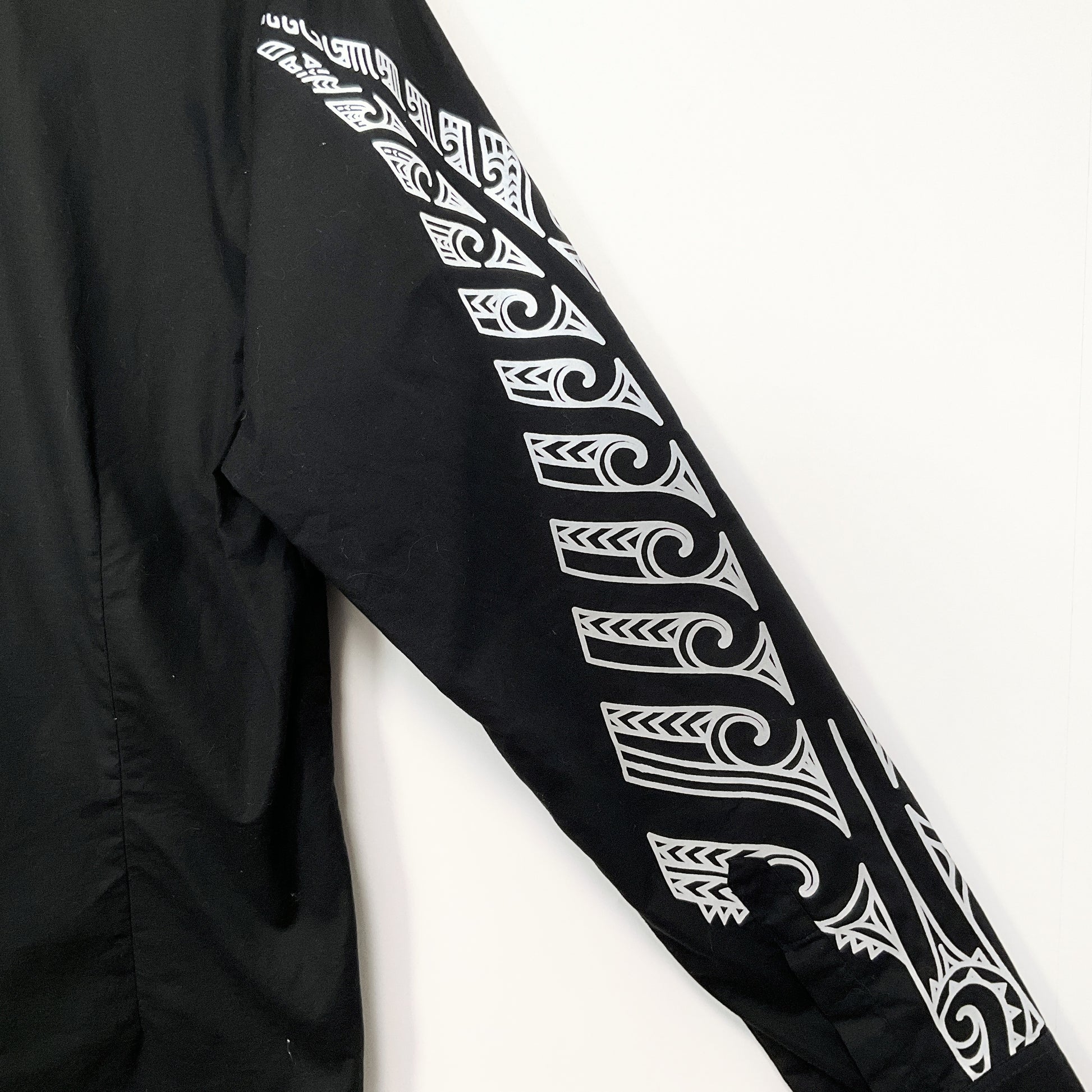 This sleek black long-sleeve shirt by Uniform Group blends formal style with athletic heritage. Made from 97% cotton and 3% spandex for comfort and stretch, it features white printed Māori-inspired motifs on the sleeve and collar, plus “New Zealand Melbourne 2006” branding on the lower front. The back is stamped with the inspiring slogan: “One team, one spirit.”