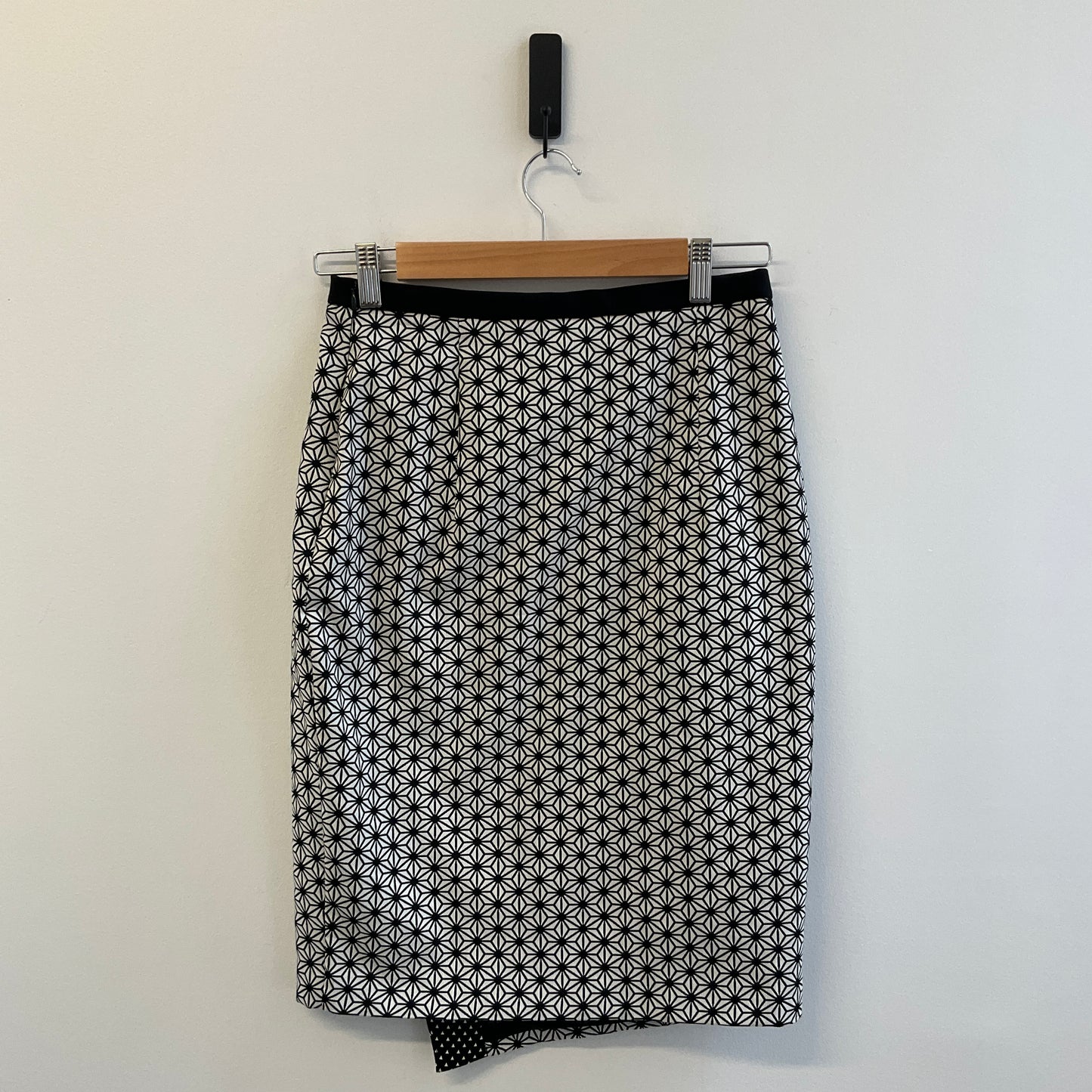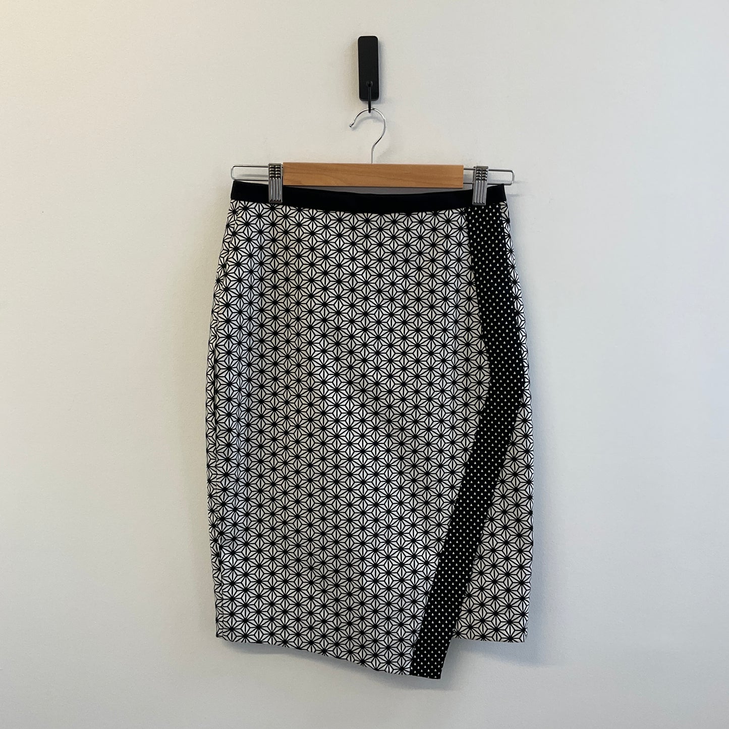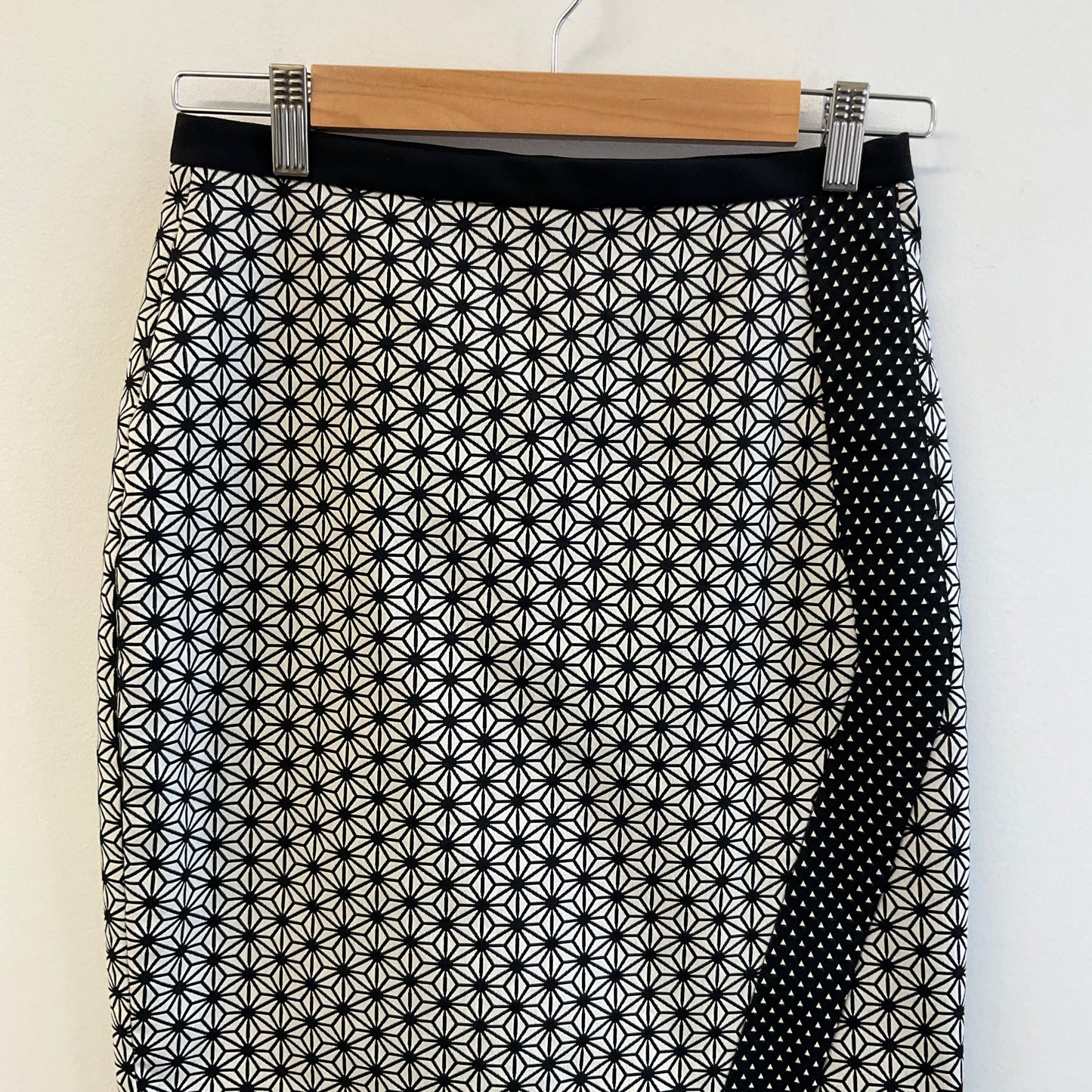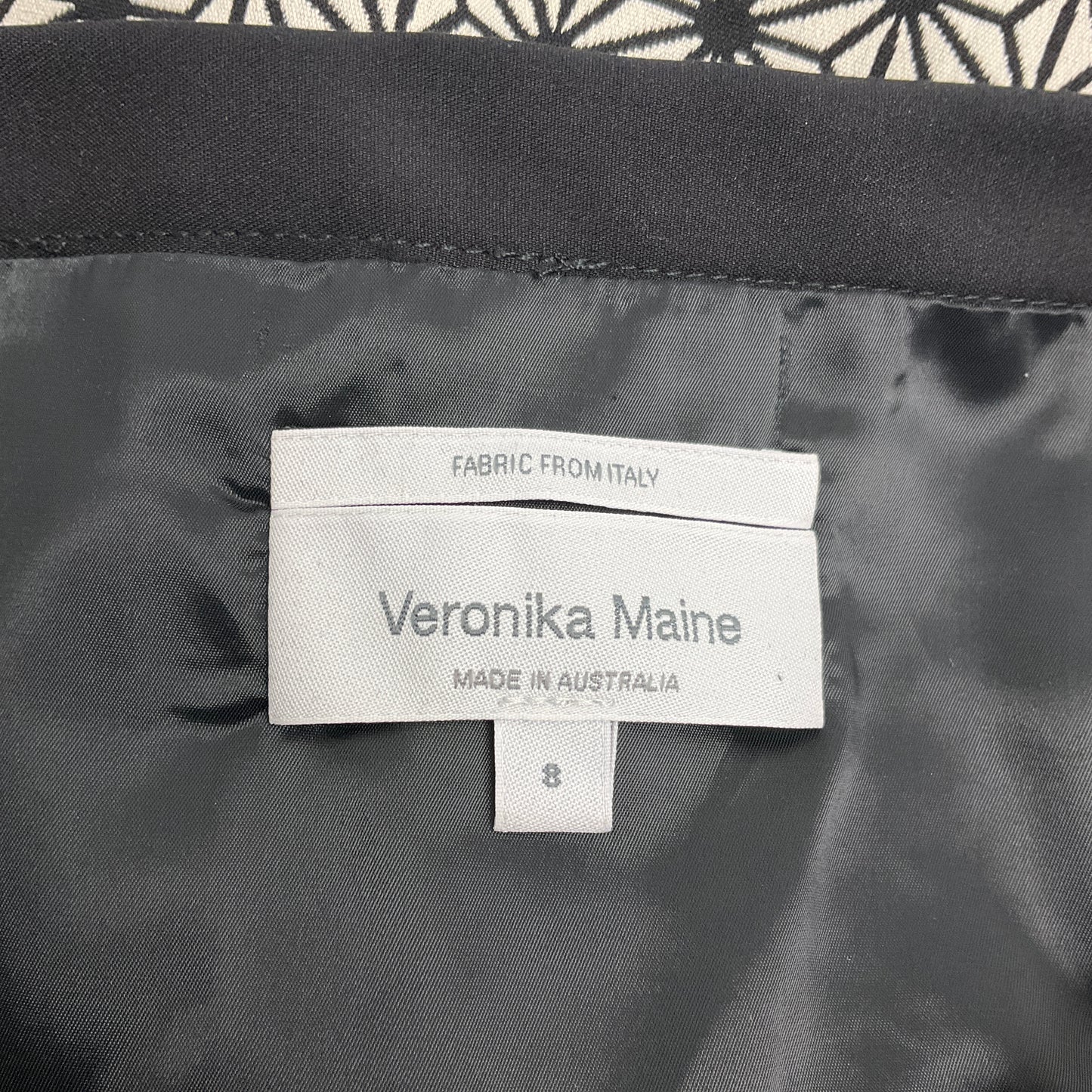 Great condition, geometric design skirt by Veronika Maine. Styled in black and white/cream. Fully lined.