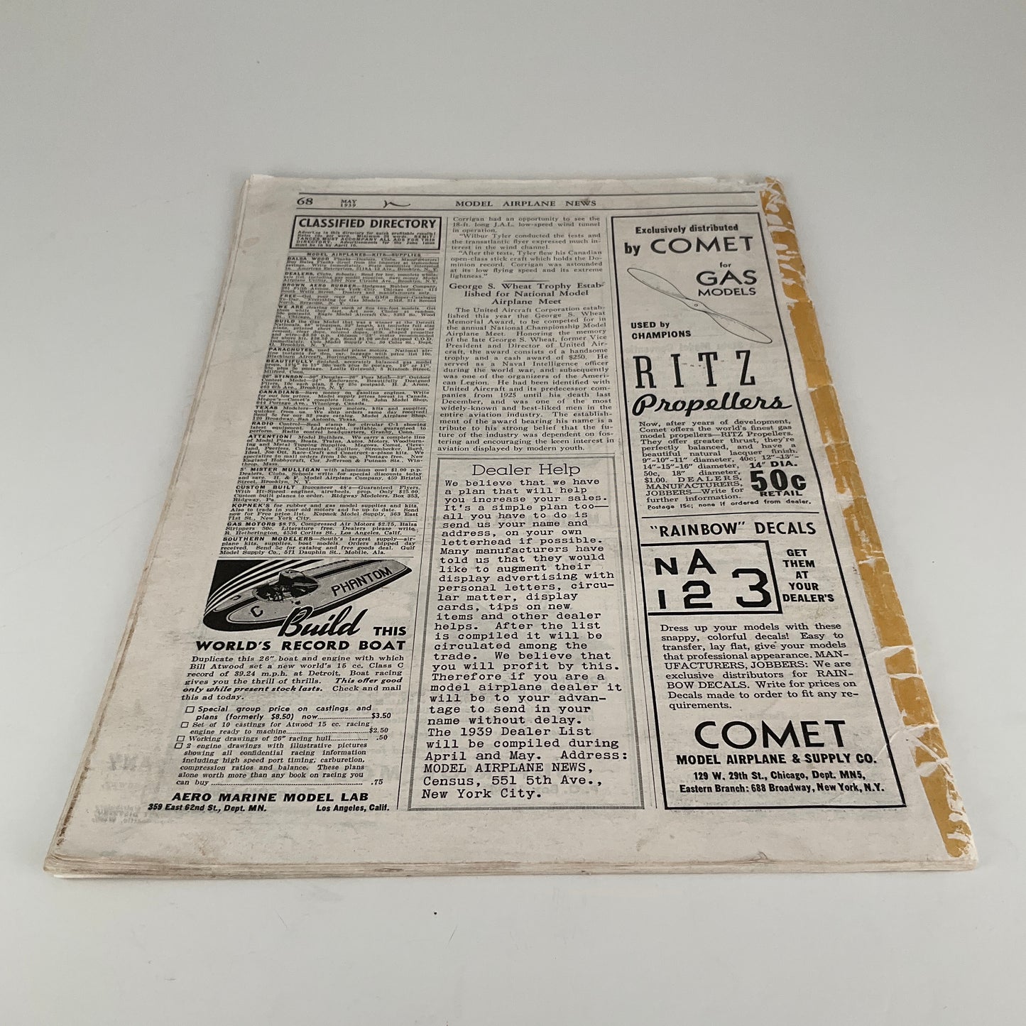 Vintage copy of Model Airplane News magazine. Published May 1939. American magazine.