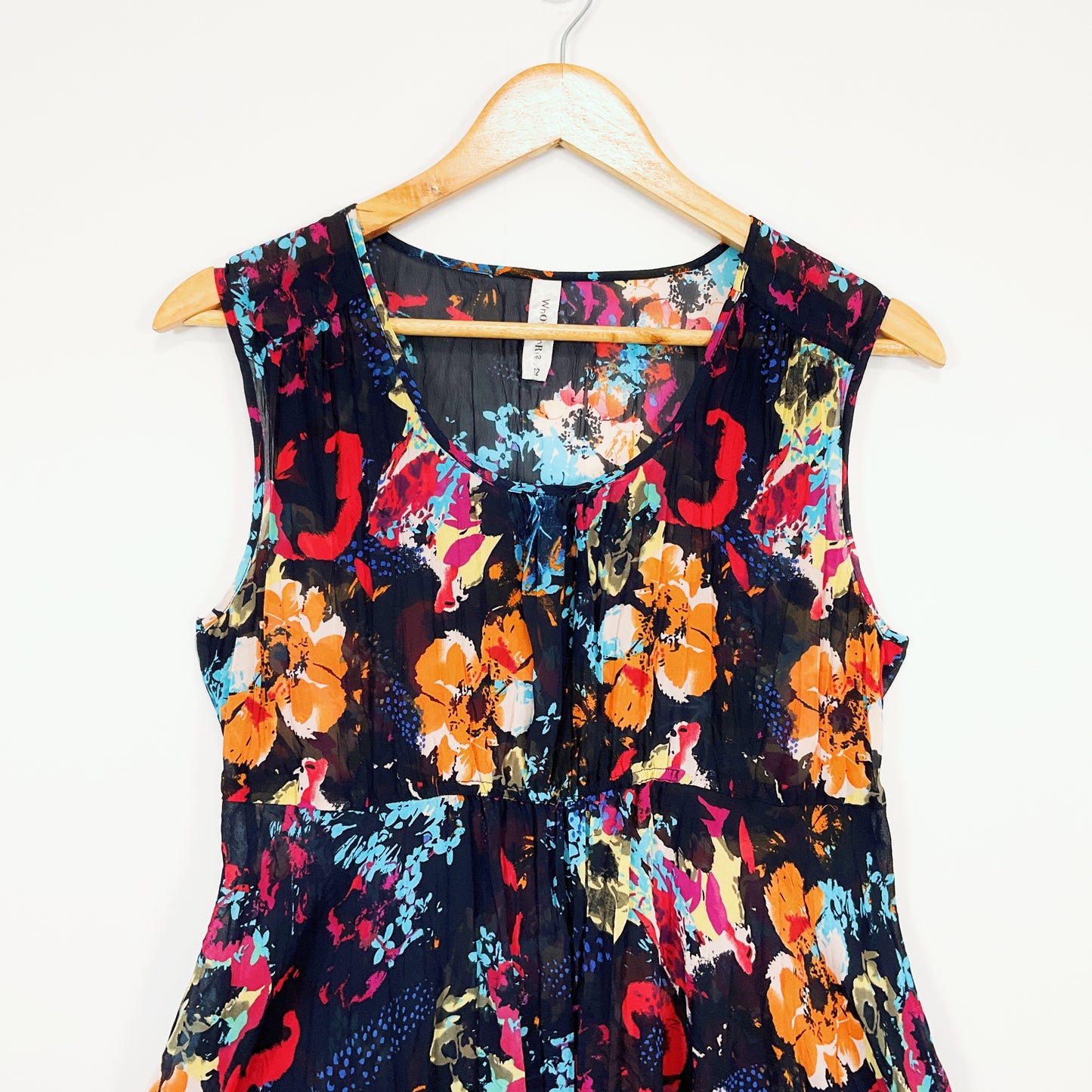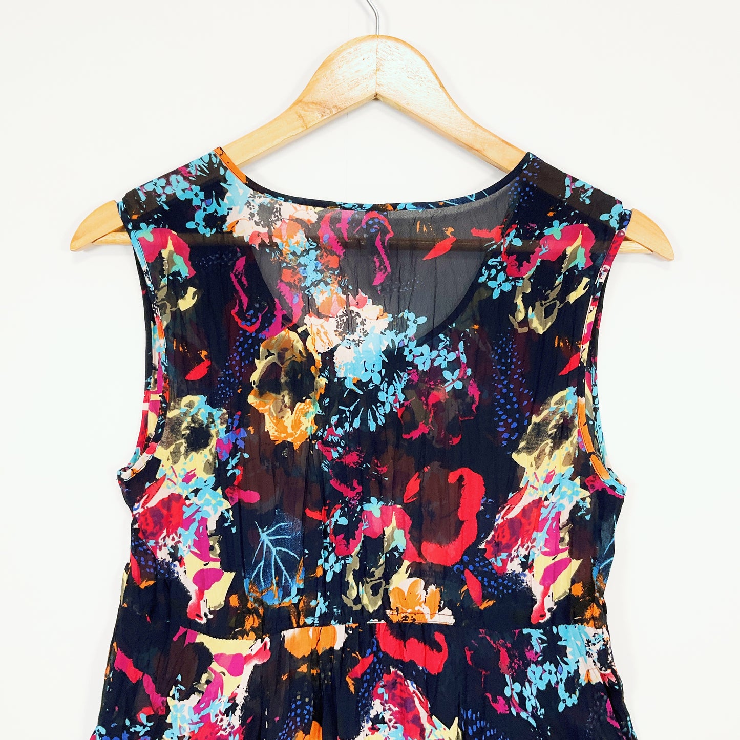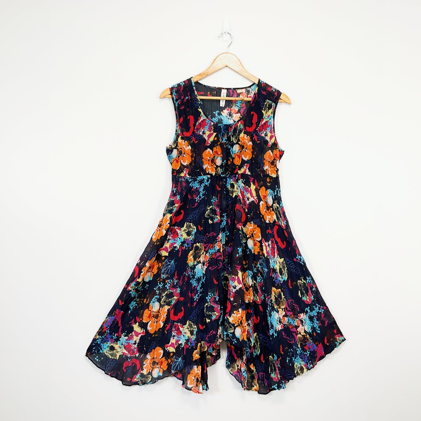 Who's Henri - Black Floral Sleeveless pinafore Midi dress