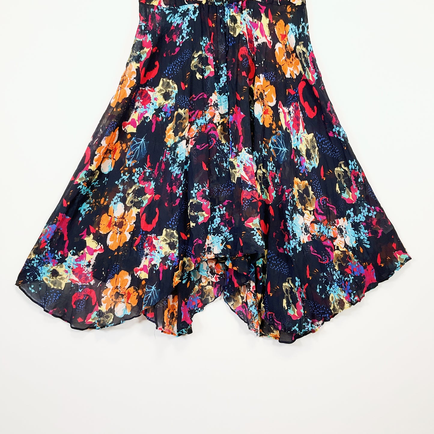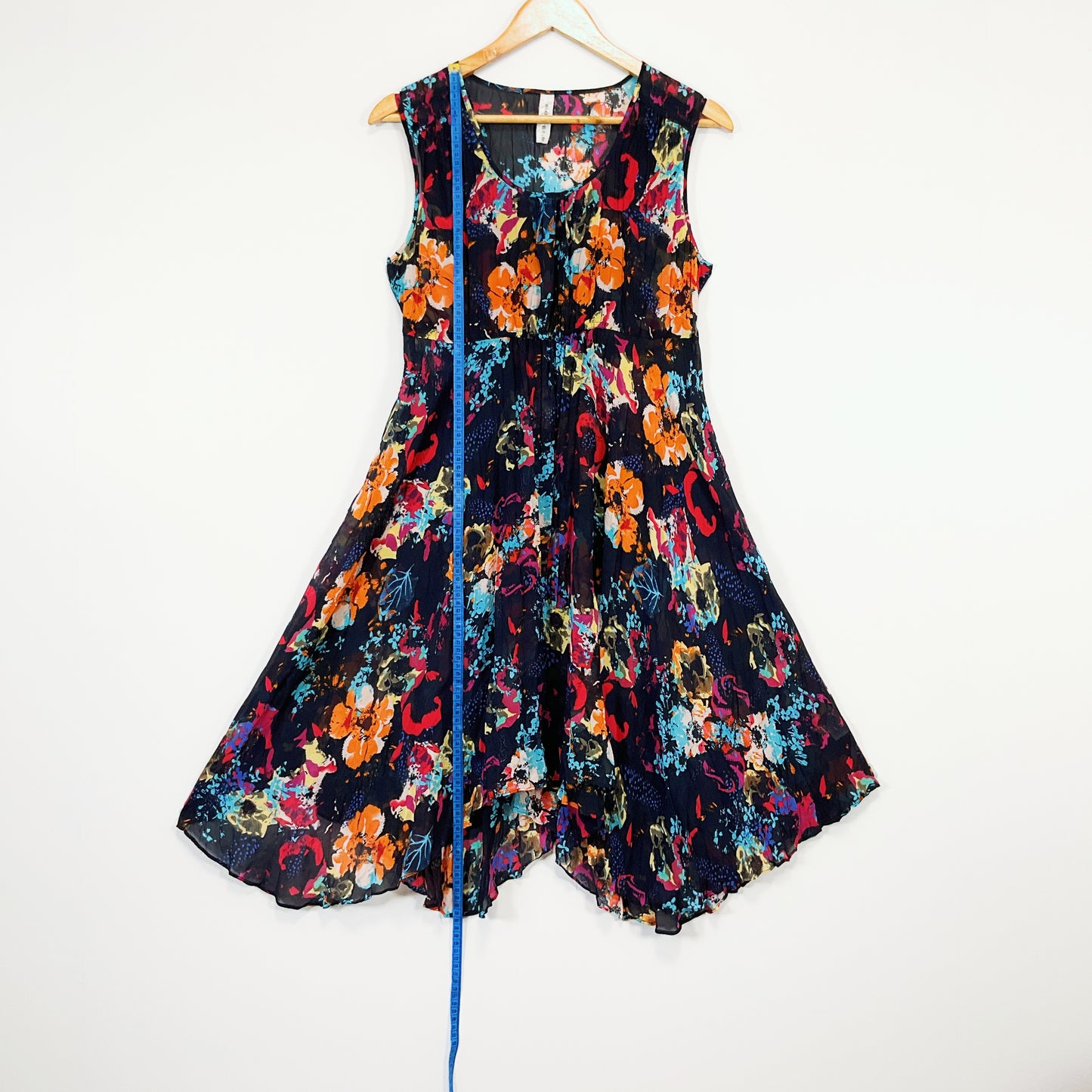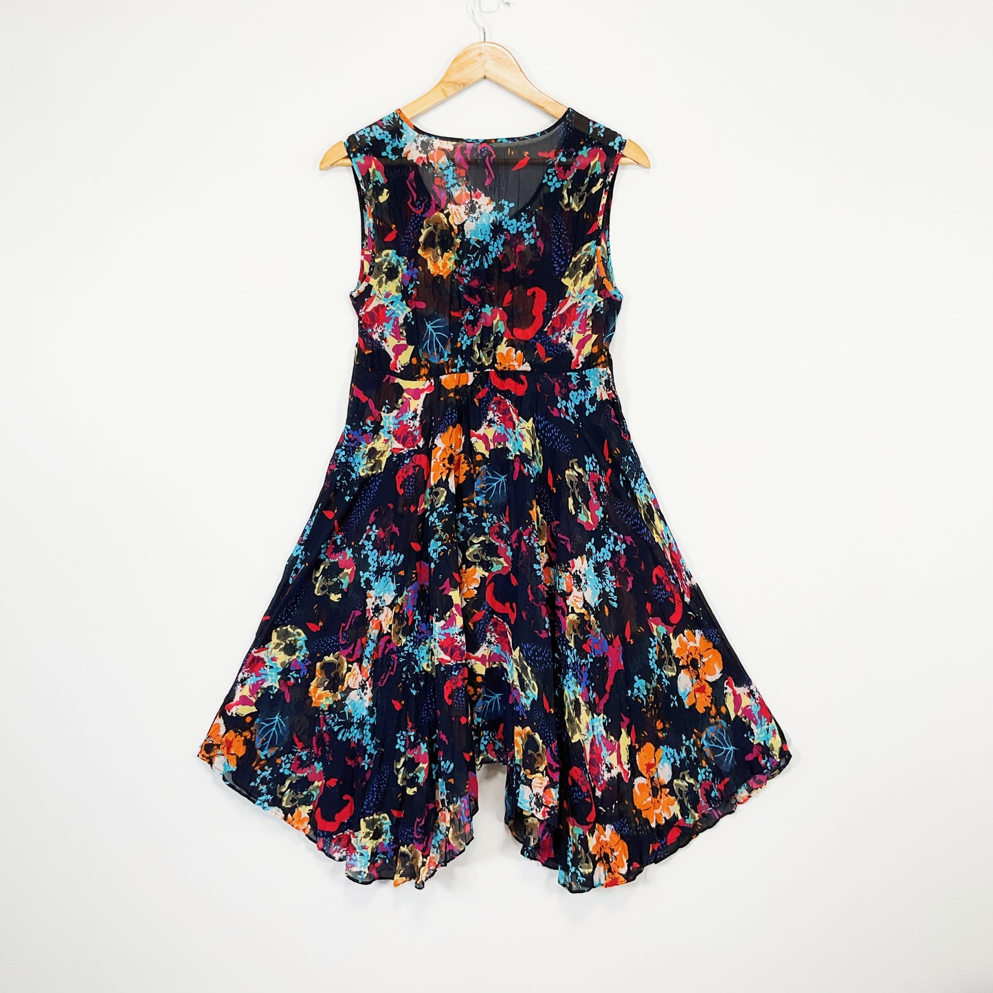 Who's Henri - Black Floral Sleeveless pinafore Midi dress