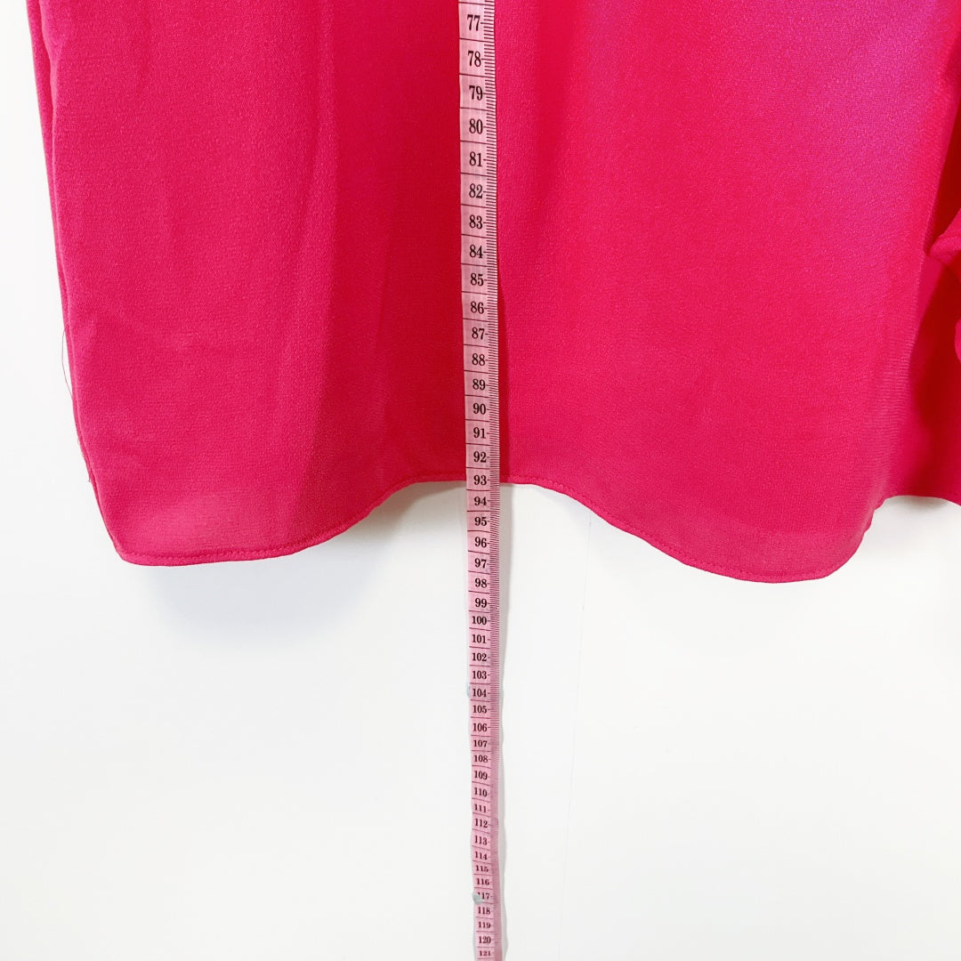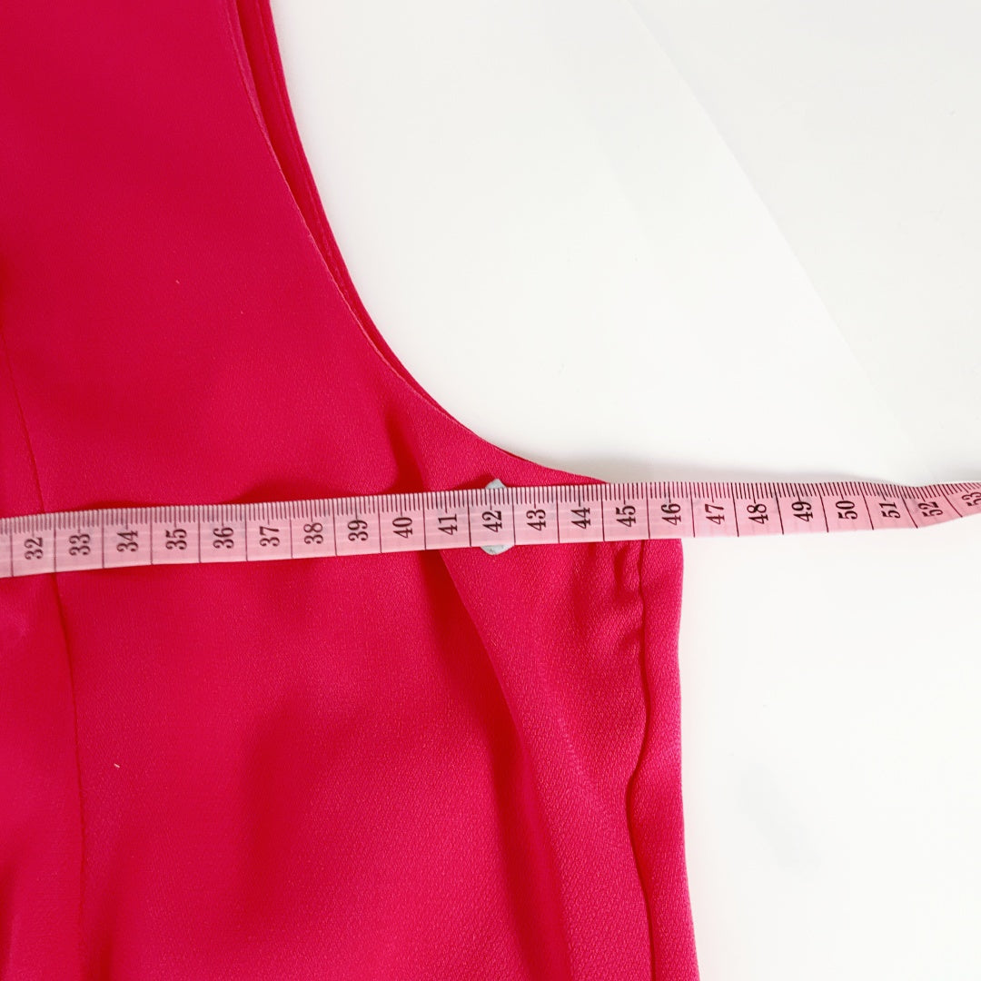 Who's Henri? ruffle lined dress. Super elegant piece with high neckline and flowing, flattering ruffles. Gorgeous pink fuchsia colour that will make you pop. Great piece to wear to any formal or semi formal event to elevate your look.