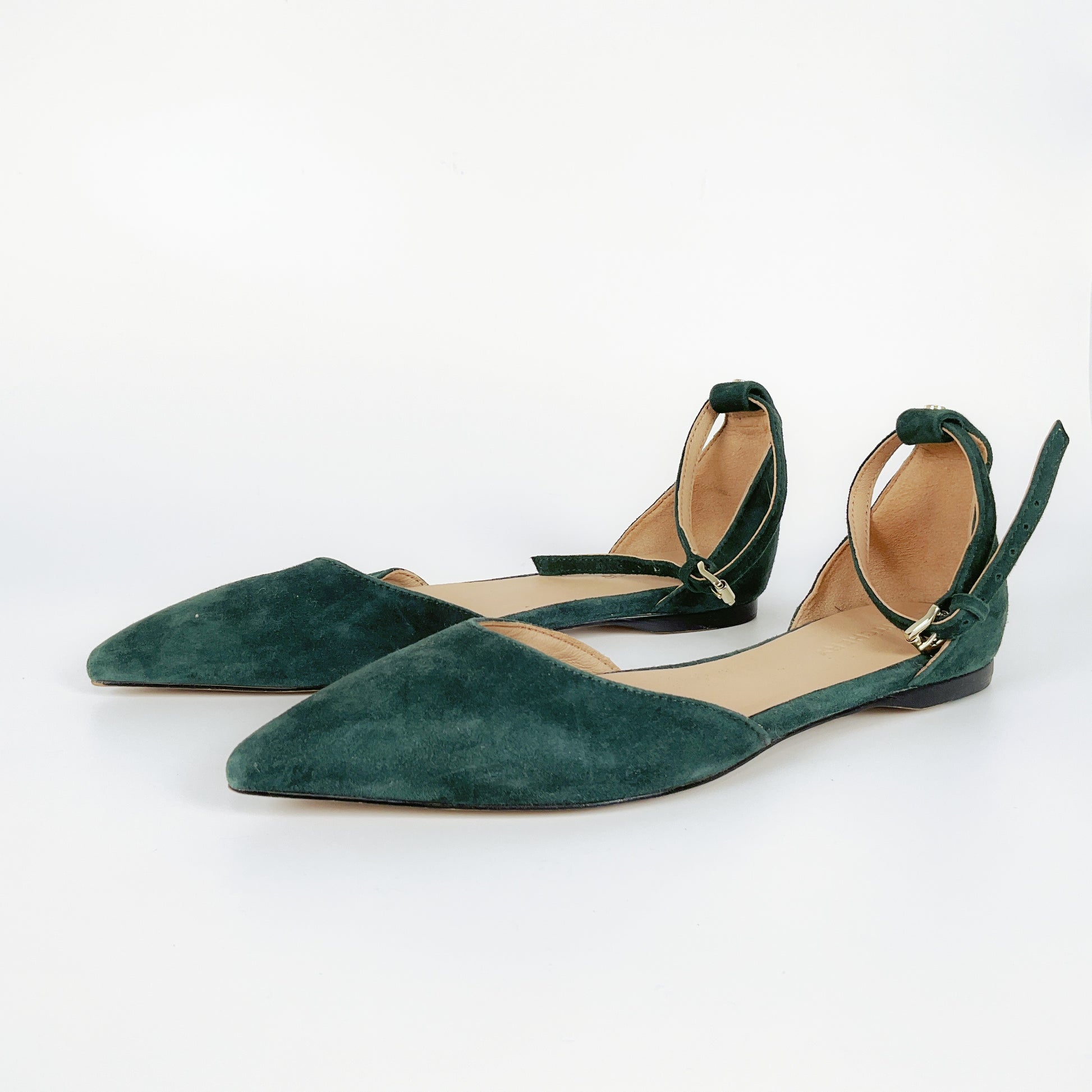 Made out of leather suede, these green coloured flats are great for any occasion. It can be worn to work or even brunch.
